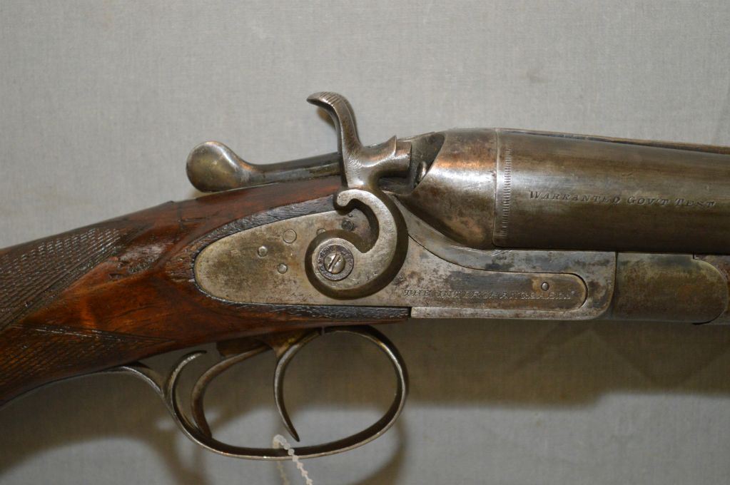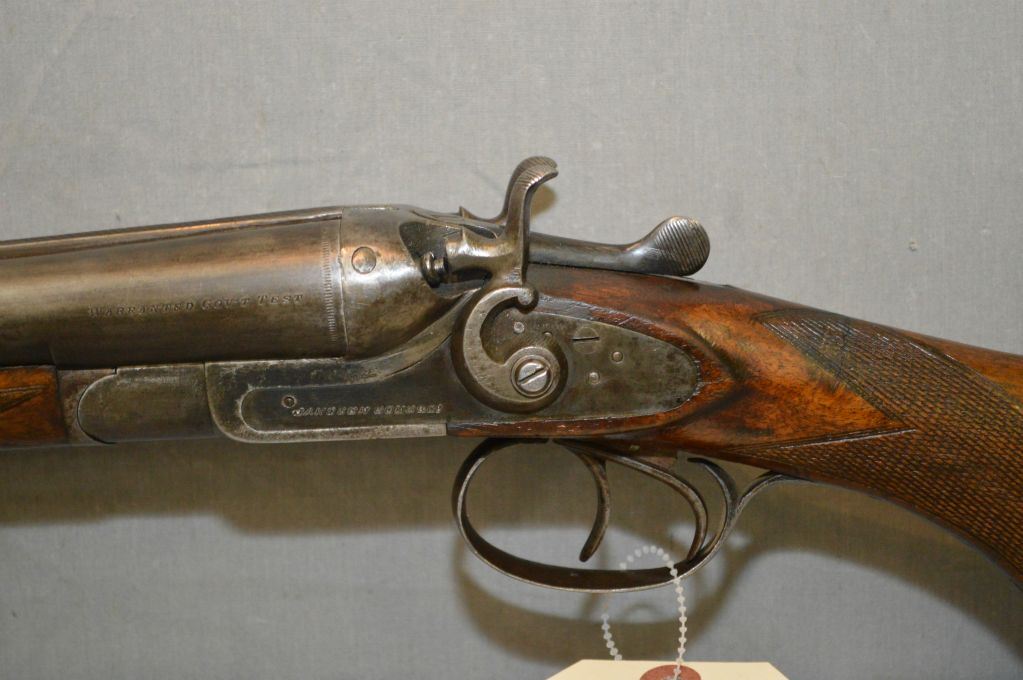 Janssen & Sons & Co. Model The Interchangeable .12 Ga Side By Side Hammer Shotgun w/ 30" bbls [ fading blue finish, fine Damascus finished barrels, Warranted Gov't Test, traces of case color receiver turning silver, checkered pistol grip stock & forend w/metal butt plate, (159) ] Ser # 7738