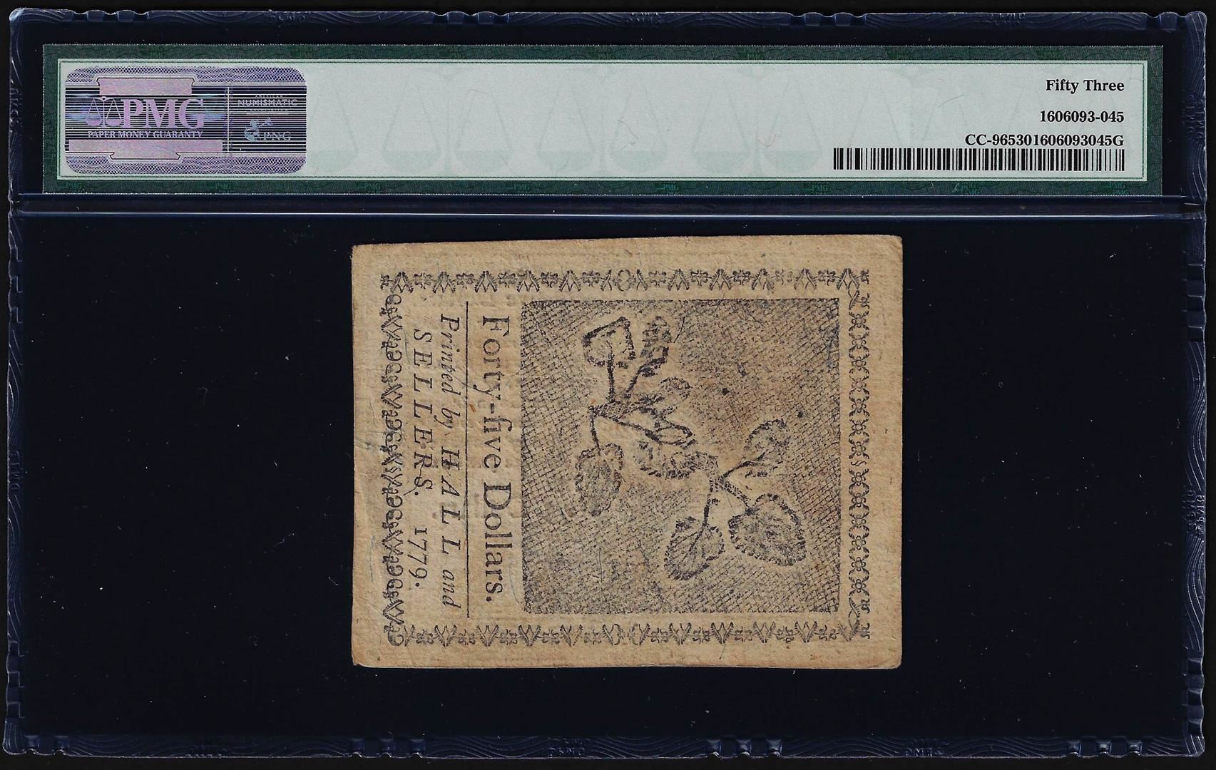 January 14, 1779 $45 Continental Currency Note PMG About Uncirculated 53