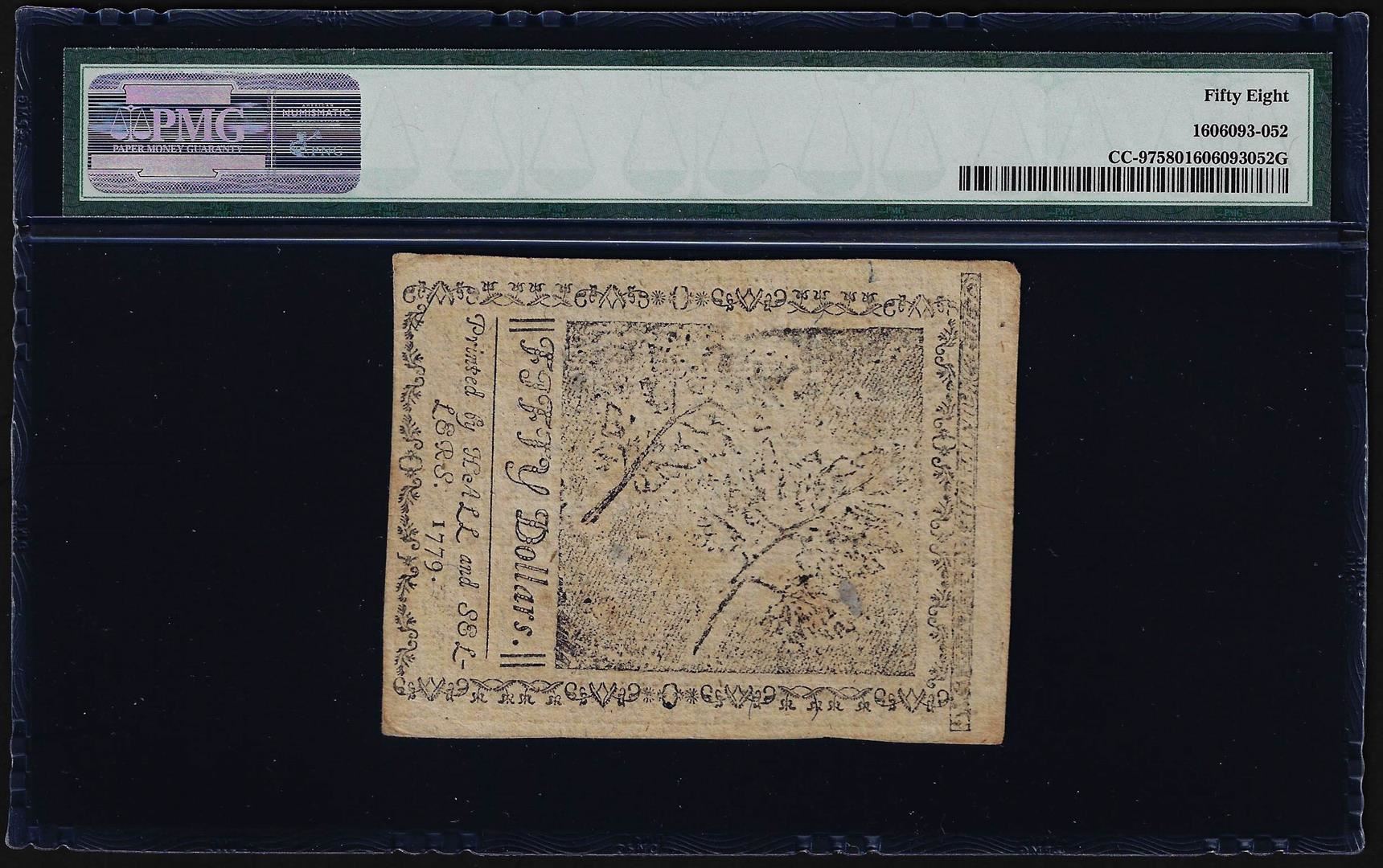 One January 14, 1779 $50 Continental Currency Note PMG Choice About Uncirculated 58. PMG Certified.
