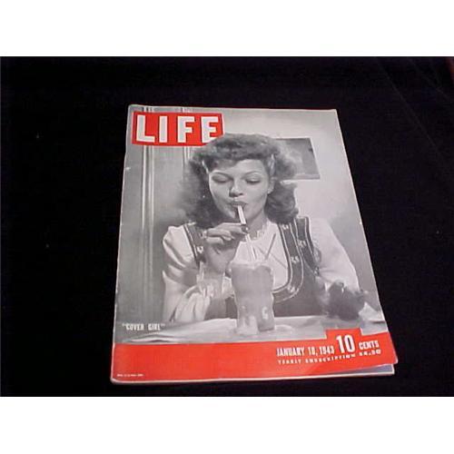 January 18, 1943 Life Magazine "Cover Girl". Pretty nice condition. Cover has fold on right bottom corner. All pages good and actually appear to be there!