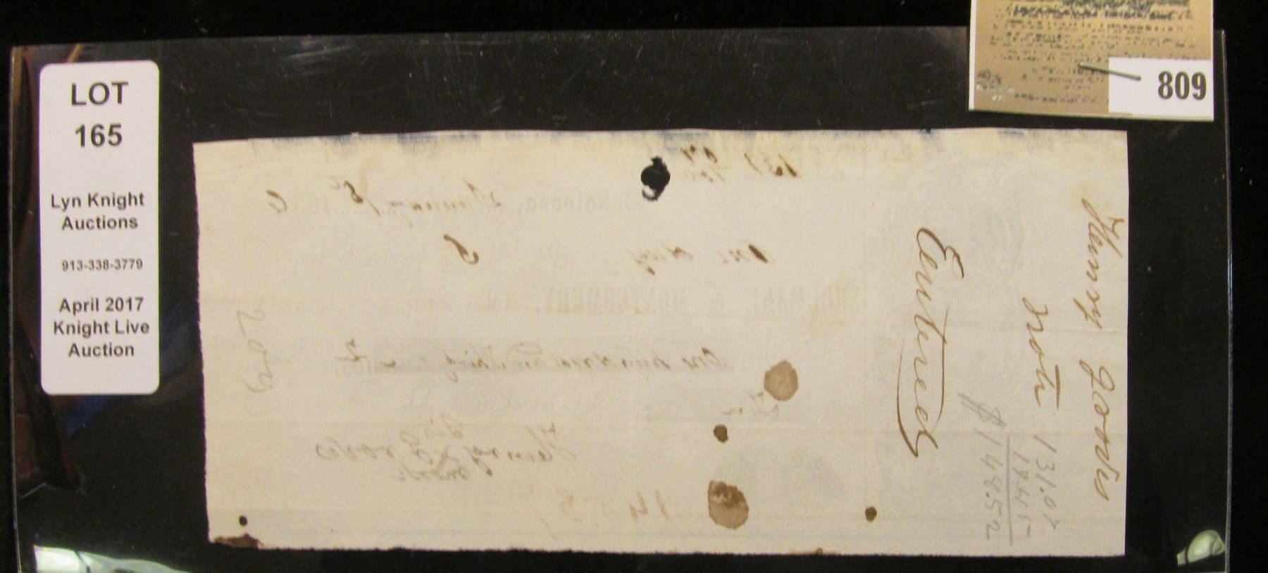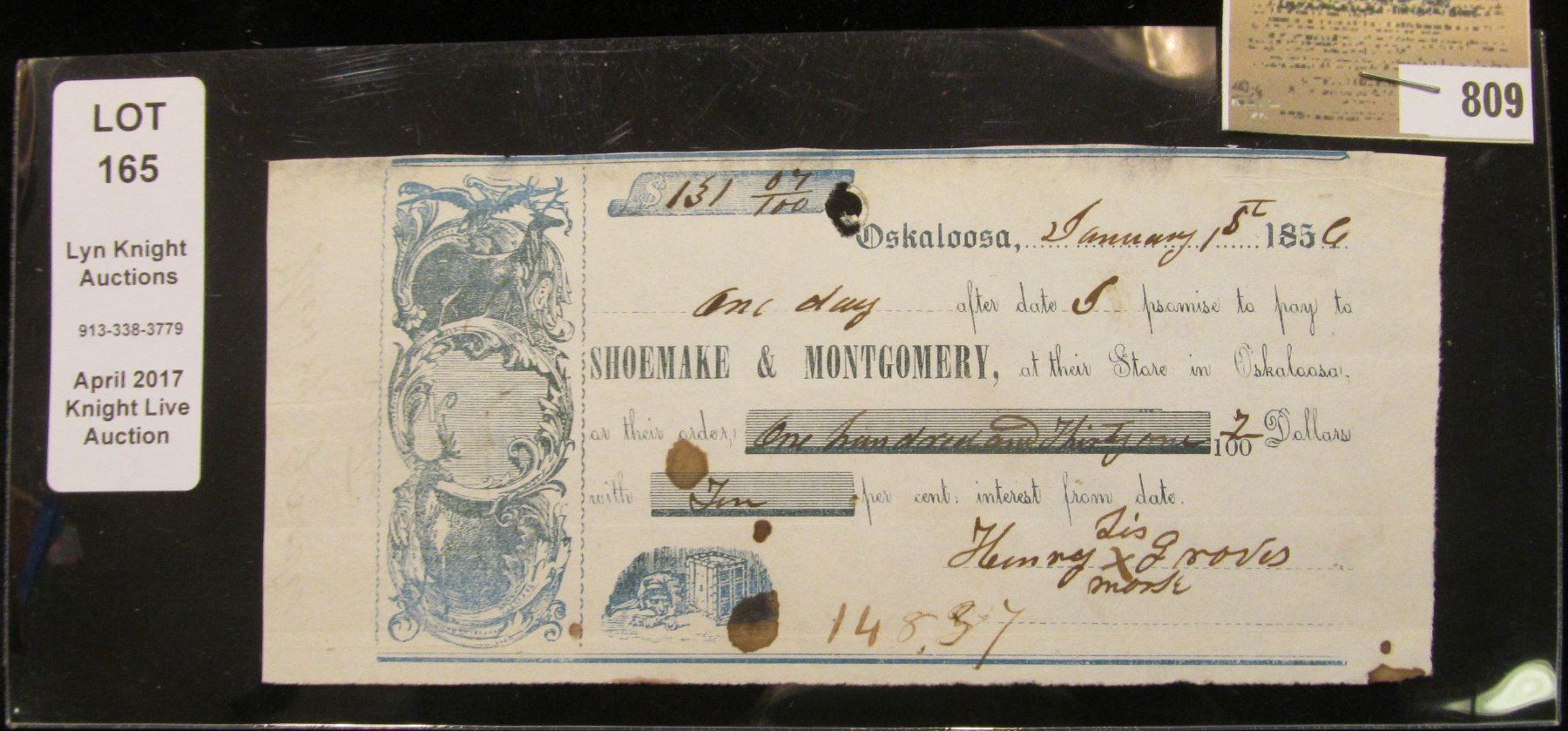 January 1st, 1856 Pre-Civil War "Oskaloosa" (Iowa) Promissory Note drawn on "Shoemake & Montgomery, at their Store in Oskaloosa,…", Ex. Lyn Knight Auctions pedigree.