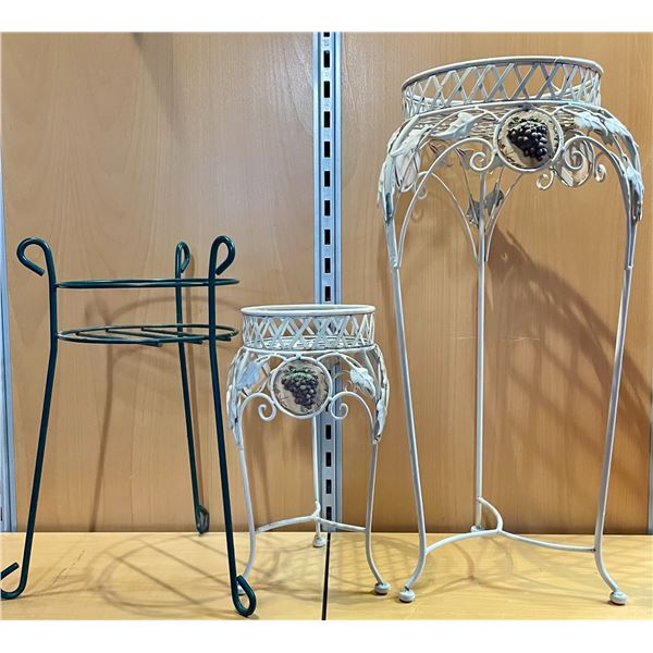Plant Stands (2 White Stands Wrought Iron, 30" & 17") (Green Stand 18.5")