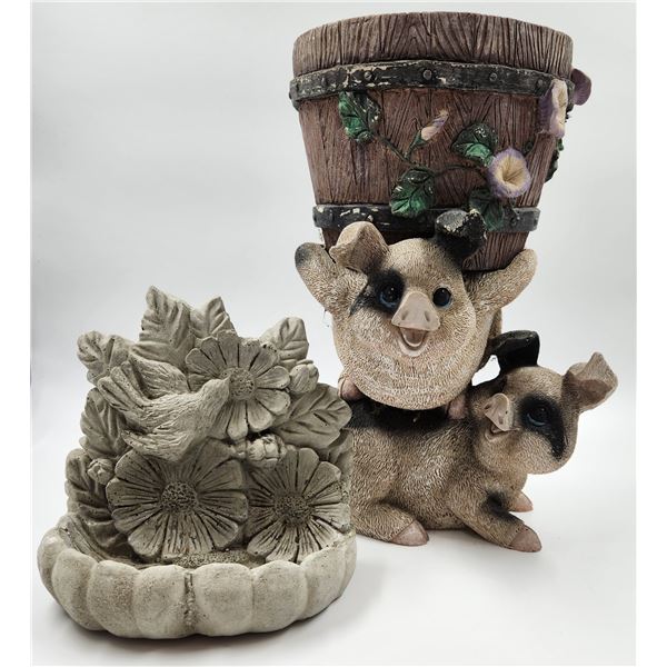 Cement Pig Planter and Birdbath