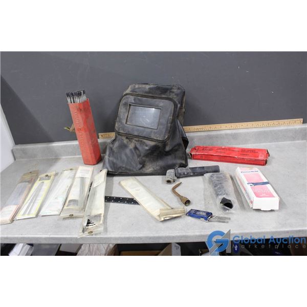 Large Assortment of Arc Welding Electrodes, Holders, & Welding Hood
