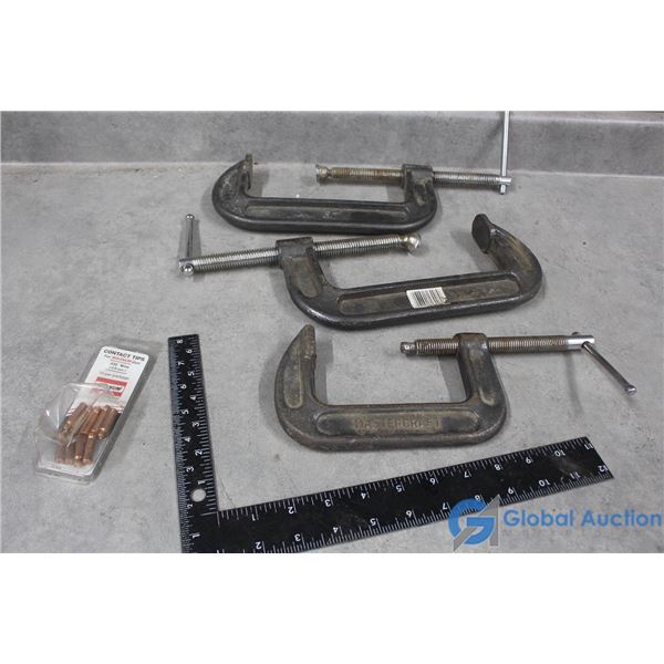 (9) Lincoln Magnum Mig Welding Spool Tips & (3) C-Clamps