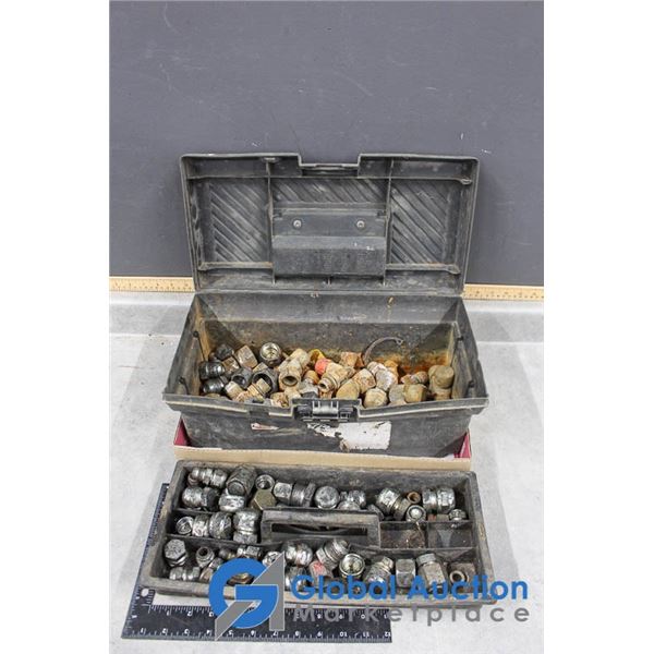 Rubbermaid Toolbox w/Assortment of Hydraulic Fittings/Caps