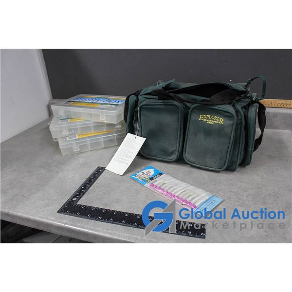 Softsided Fishing Tacklebox w/Organizers & Unused Furry Jigs
