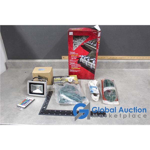 Unused Household Extension cords, LED Light, Light Clips, etc