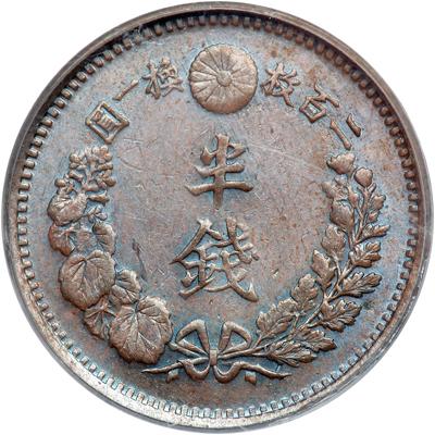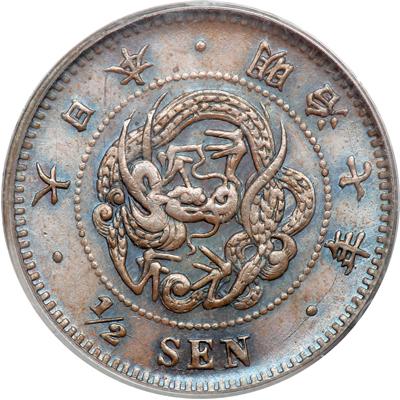 Japan. ½ Sen, 1874 (Meiji-7). KM-Y16.1. PCGS graded MS-63 Brown.
