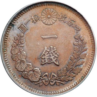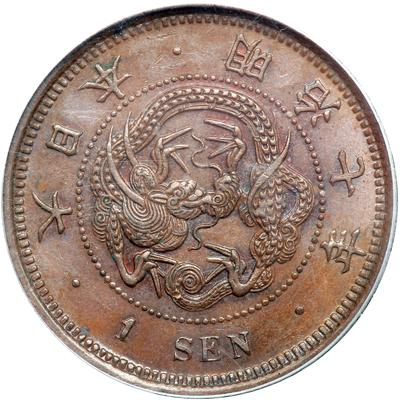 Japan. 1 Sen, 1874 (Meiji-7). KM-Y17.1. PCGS graded MS-64 Brown.