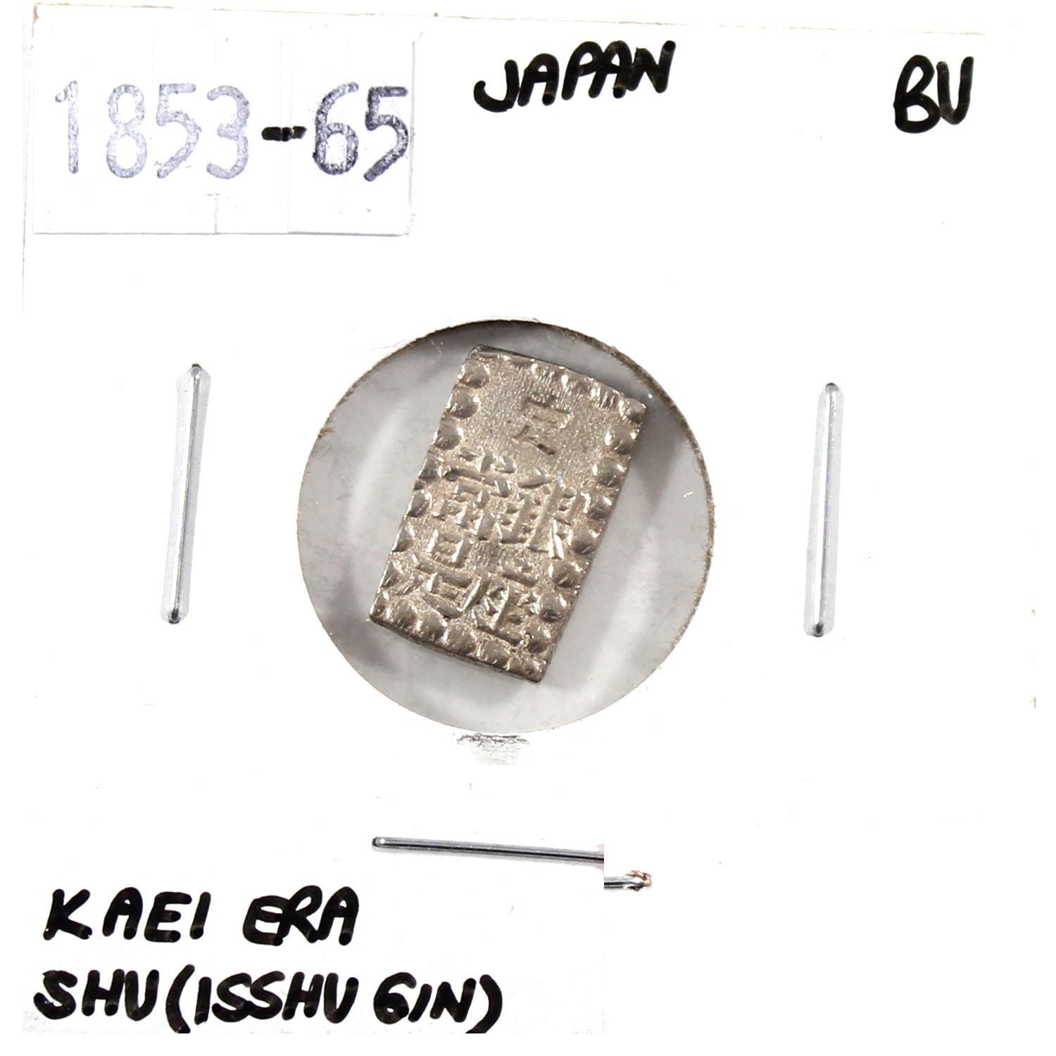 Japan, 1853-65 Silver SHU (Isshu Gin) - Kaei Era in Brilliant Uncirculated condition.