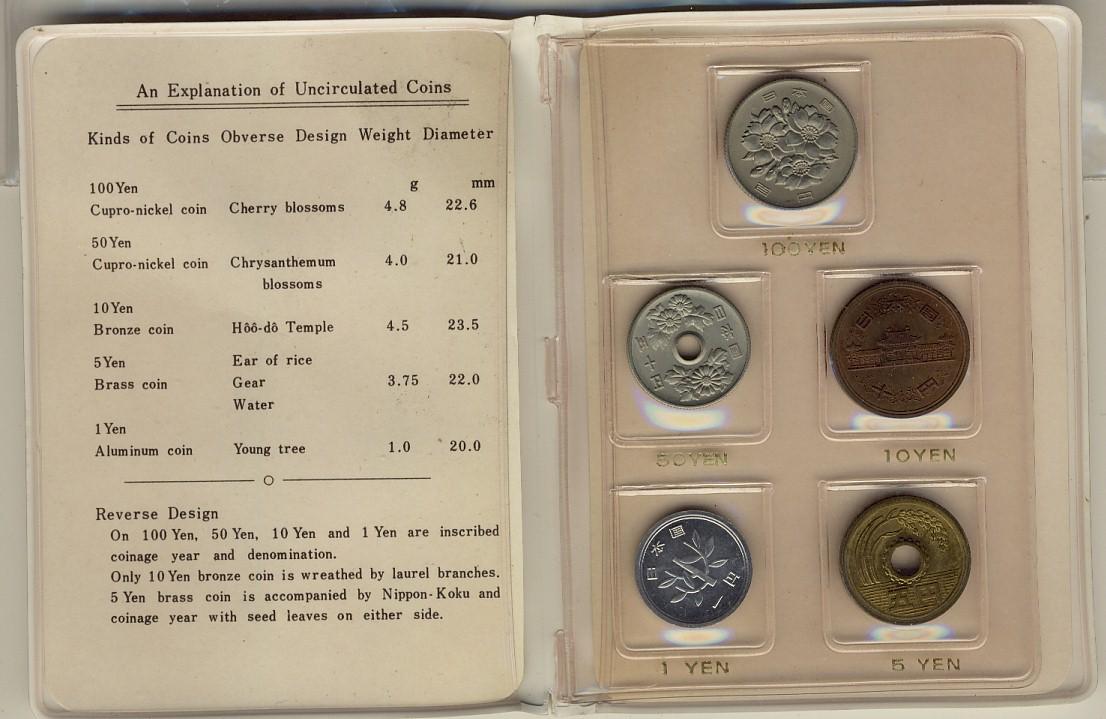 Japan 1969 Mint Set, KM# MS 1. Set of 5 coins, excessively difficult to find. In original holder.