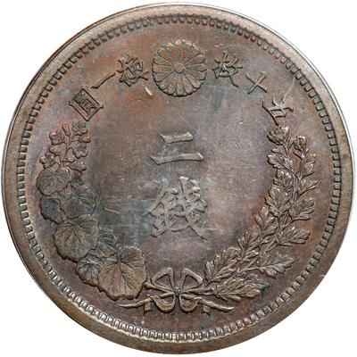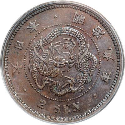 Japan. 2 Sen, 1876 (Meiji-9). KM-Y18.1. PCGS graded MS-63 Brown.