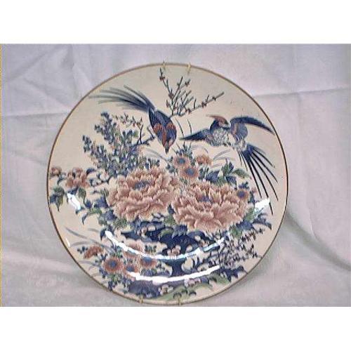 Decorative Bird Plate has a white background with birds and flowers and comes with the wire hanger already attached for hanging. This decorative plate is marked Asahi Japan and measures 14.5 inches wide and is in fine condition with no chips or cracks.