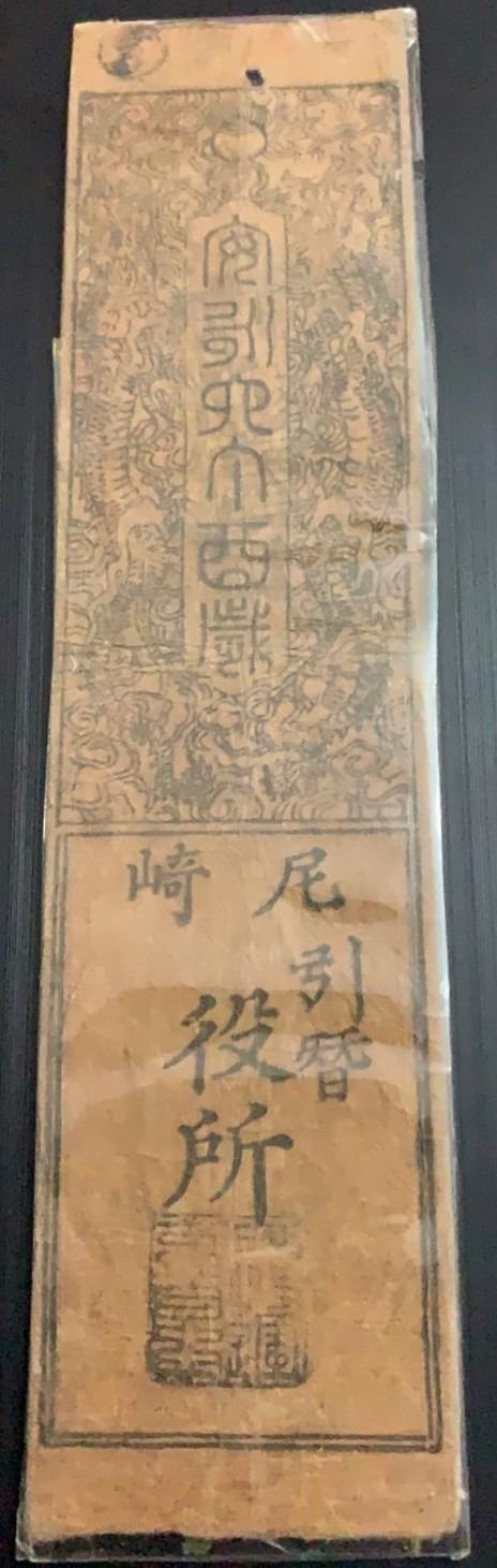 Japan, Feudal, Samurai, Hansatsu banknote, 1615-1661, VFbr/16th century, Specially protected in nylon bag