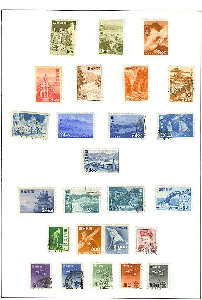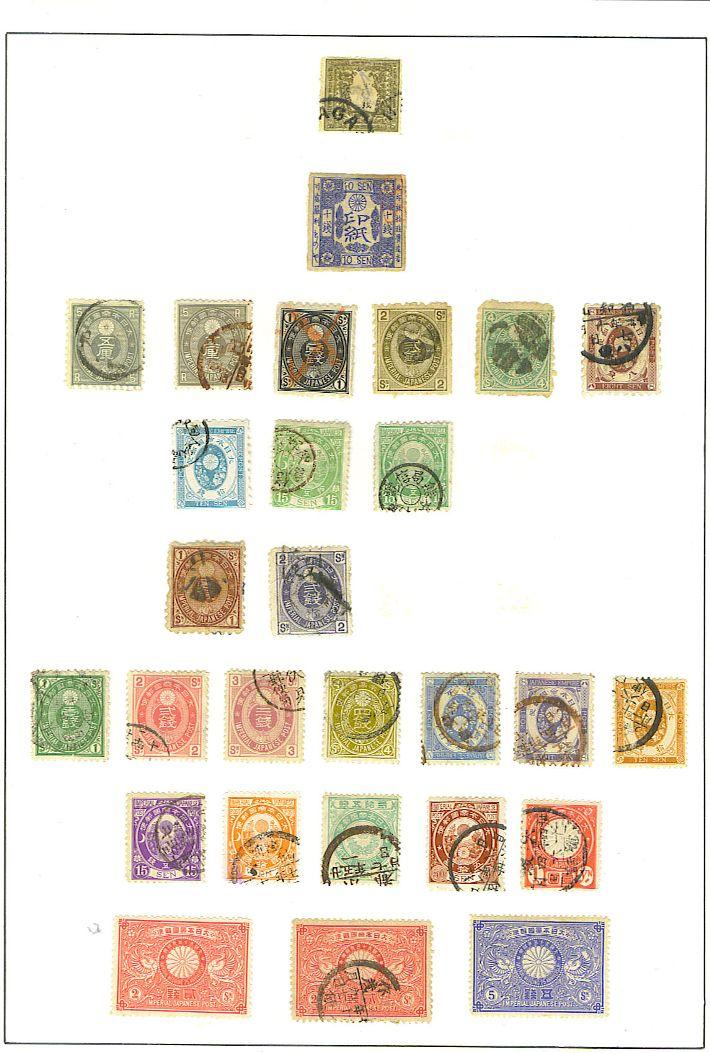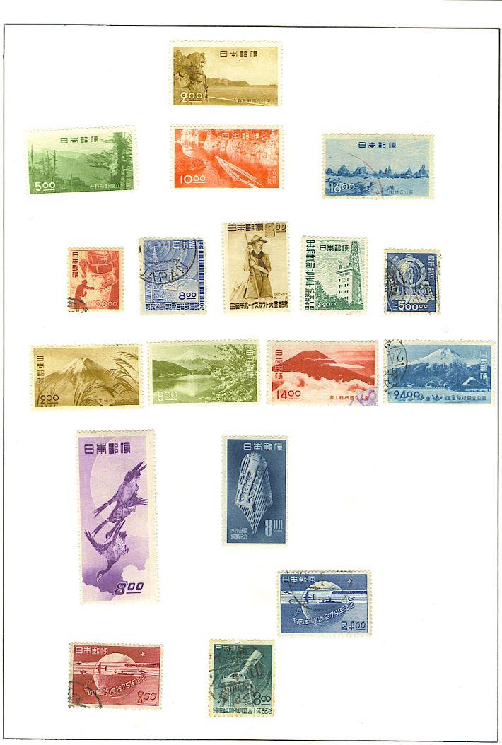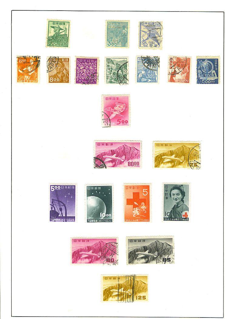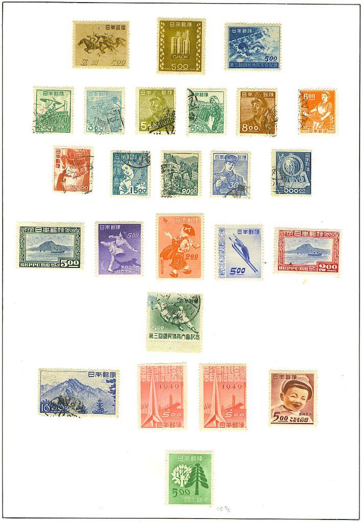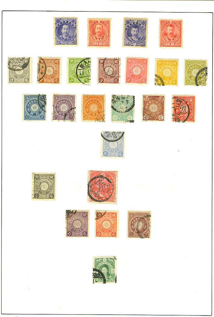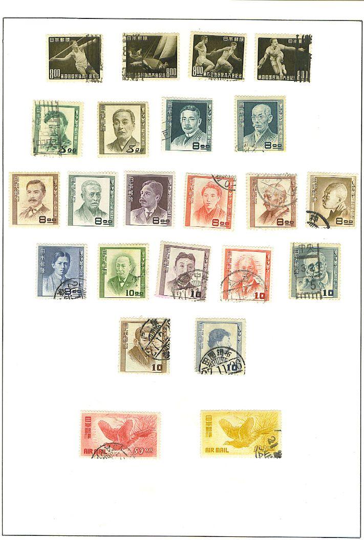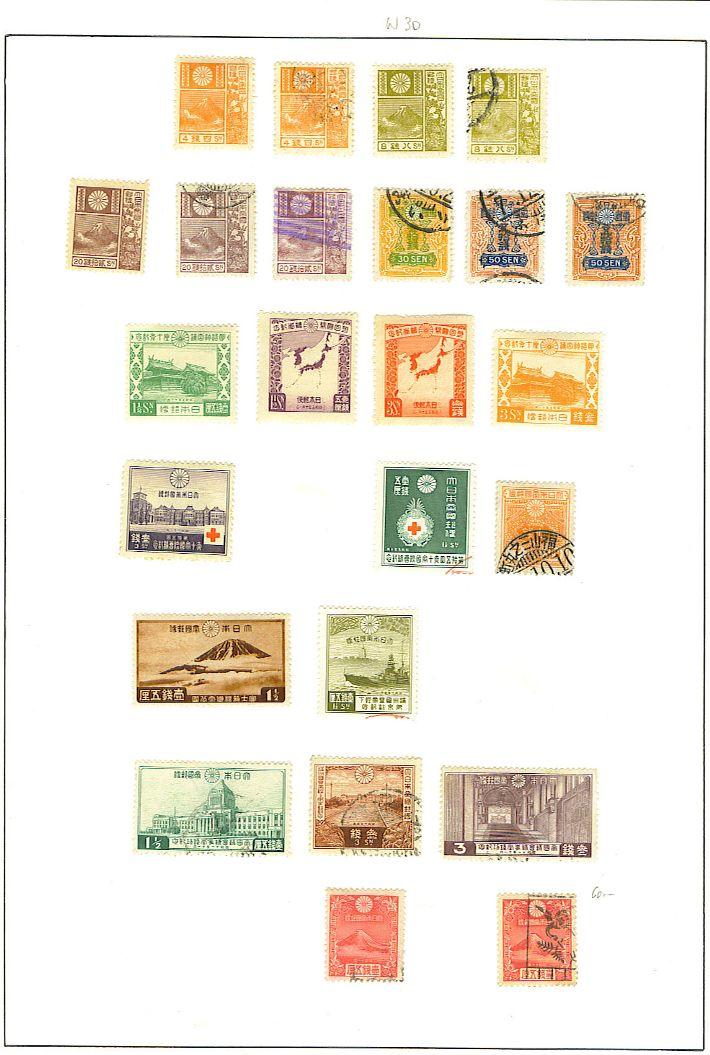 Very useful Japanese stamp collection of several hundred stamps, unused and used, on home made pages to about 1965. Many better values throughout. Generally F-VF and sound. Values to $30+ spotted. Well worth review. Est.$200-300