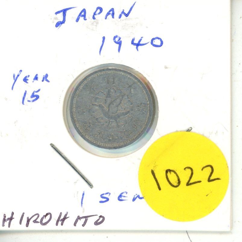 Japan. Year 15 (1940) 1 Sen. Emperor Hirohito. Issued during World War II. EF.