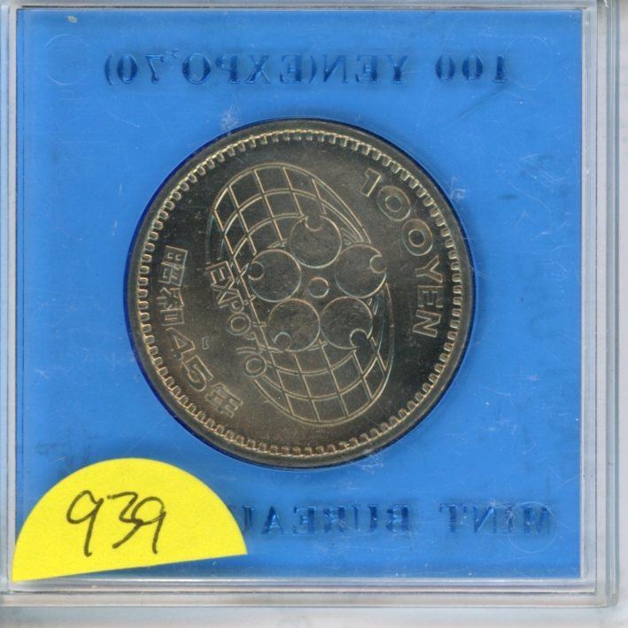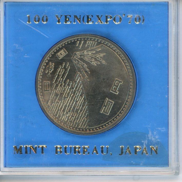 Japan. Year 45 (1970) 100 Yen. Mount Fuji. Coin celebrates EXPO70. BU. In case of issue.