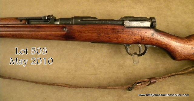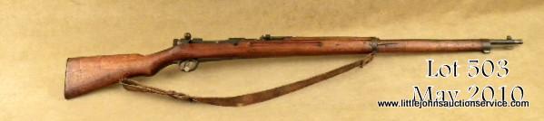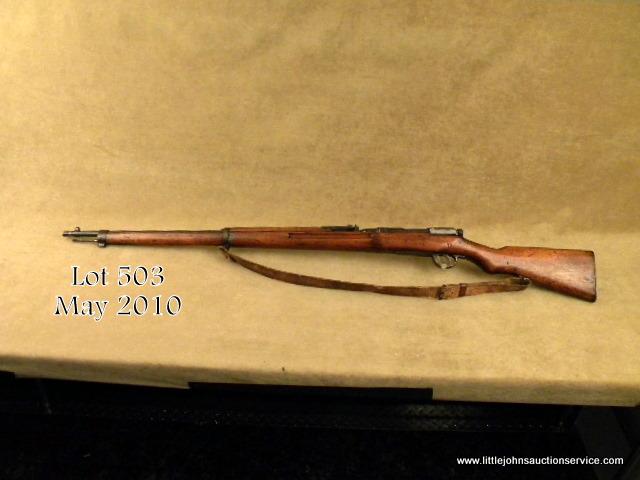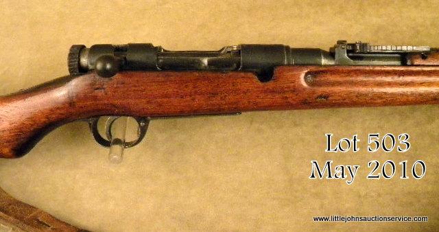 Japanese Arisaka Type 38 bolt-action rifle, 6.5mm cal., 31-1/2” barrel, bayonet lug at bottom of barrel band, military blue finish, full length wood stock, original woven leather sling and sling swivels; steel butt plate, #1611791. This gun isin overall very good condition showing approx. 80%+ original mat blue finish on metal surfaces with majority of loss on the left side of the receiver; good bore, crisp action, mum slightly defaced and Japanese characters in good condition; steel cleaning rod; Koishikawa Arsenal marked; stock in overall good condition showing scattered nicks and mars from carry and storage with what appears to be an old addition of linseed oil to the finish. Est.: $200-$400.