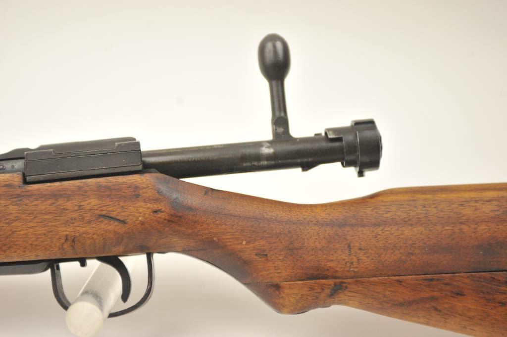 Japanese Arisaka Type 99 bolt action rifle, 7.7 Japanese caliber, Serial #1171. The rifle is in good overall condition with a 26” barrel with a blade front and aircraft style rear sight missing the aircraft wings. Themetal surfaces have gone to brown patina. The barrel has the Tokyo Arsenal mark on the rail and the mum is retained. The smooth wood stock is in good condition with mars and bruises. The bore is fair and the actionworks. Est.: $150-$300. (C+R).