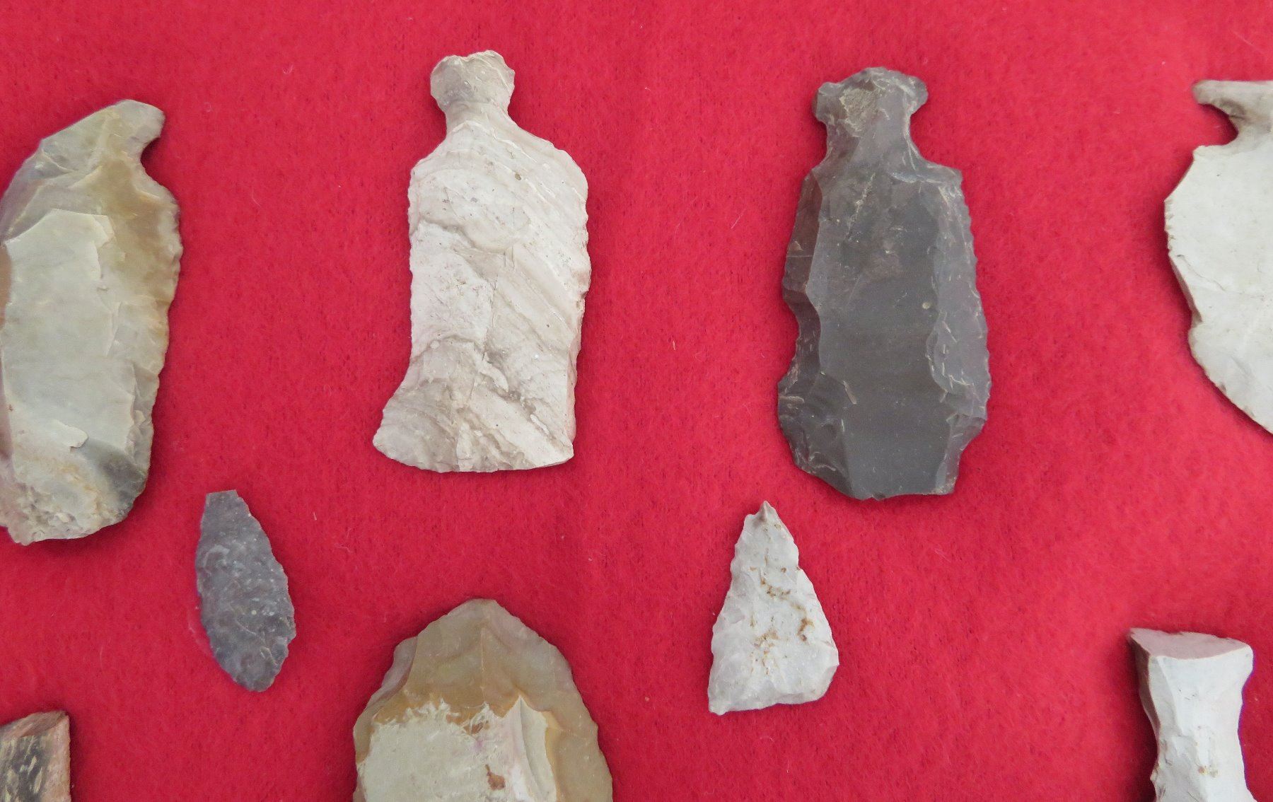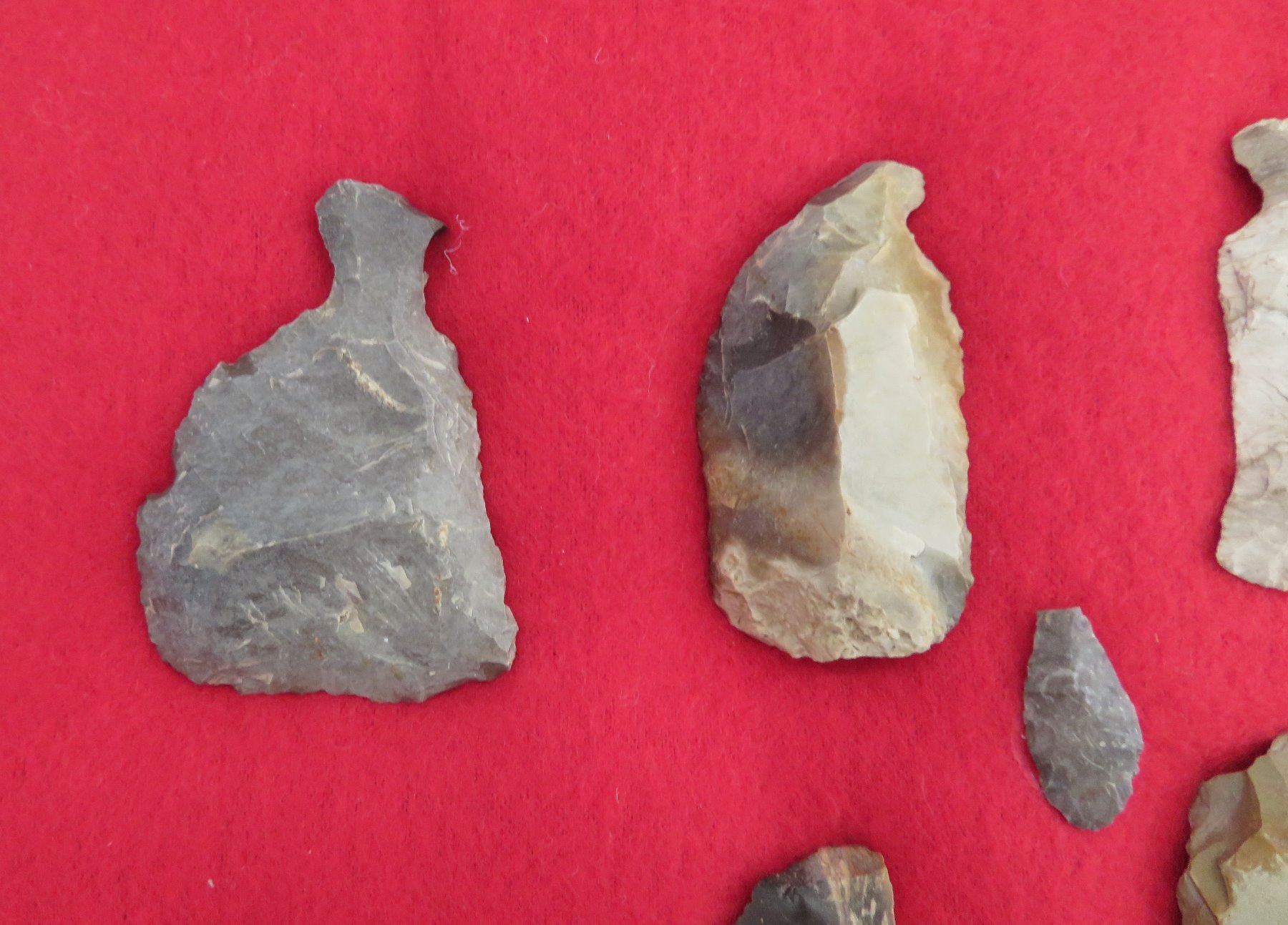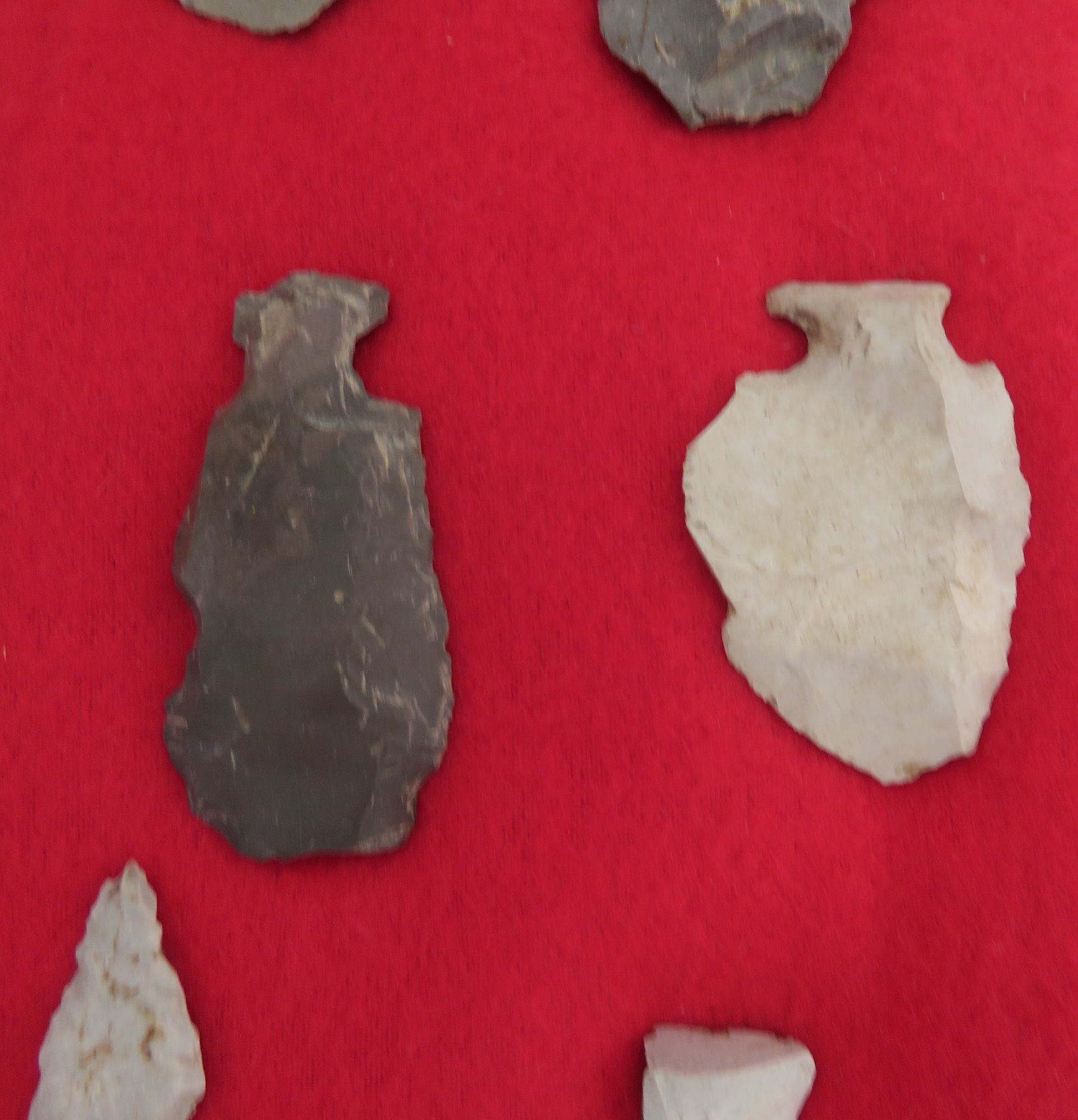 Japanese Arrowhead Flint Artifact Collection, pre-historic items. Made of chert, the largest measures 4 1/2". Japan. Fine, stone artifacts from Japan. Rare tang knives, frame not included. Condition: As found, see images. Shipping: $24.50 w/insurance and signature.