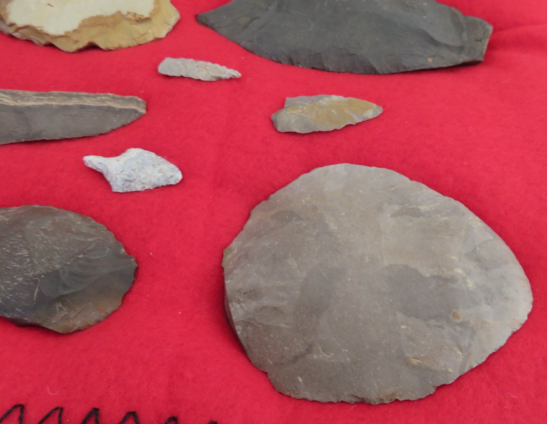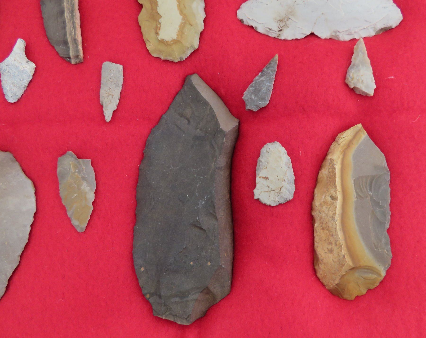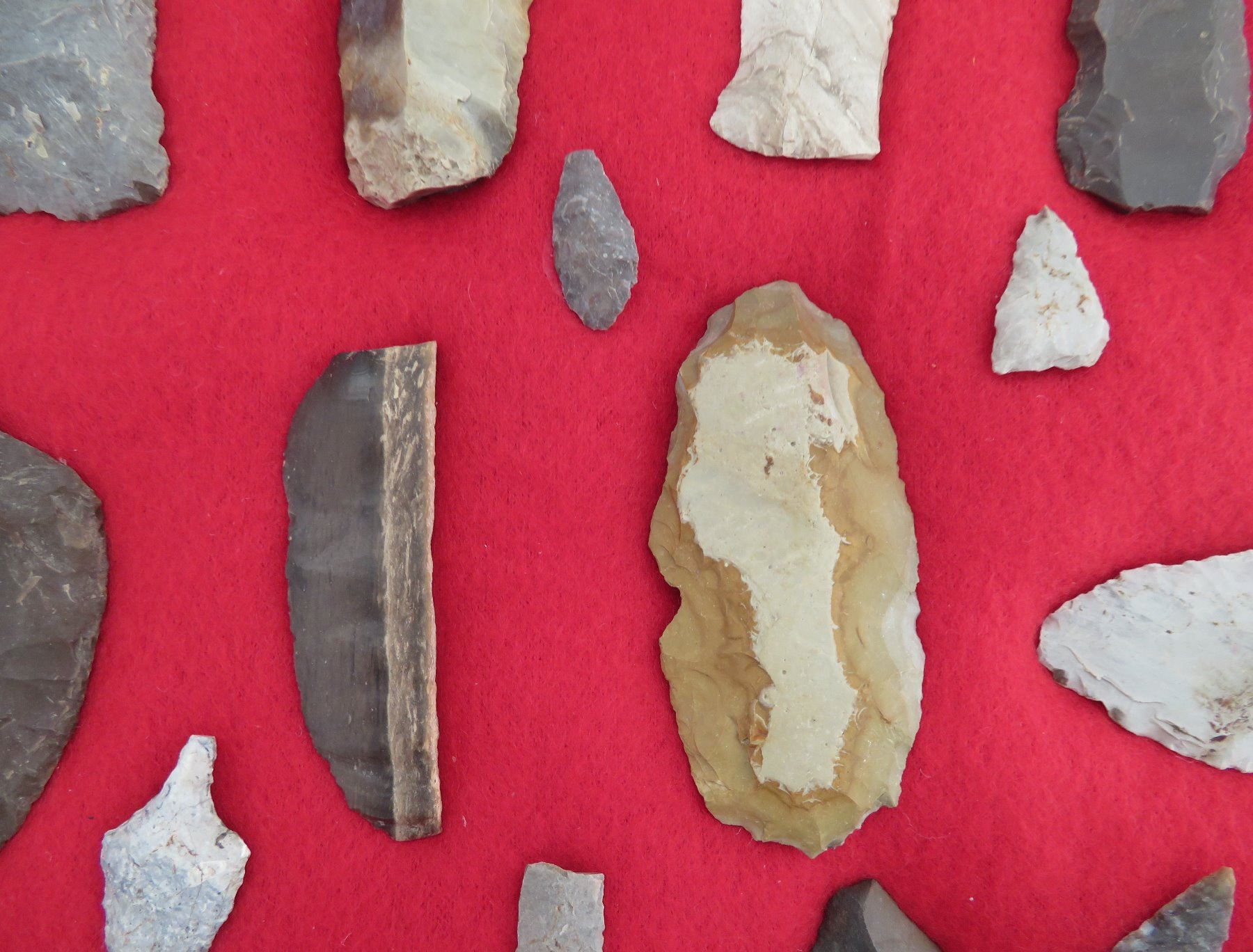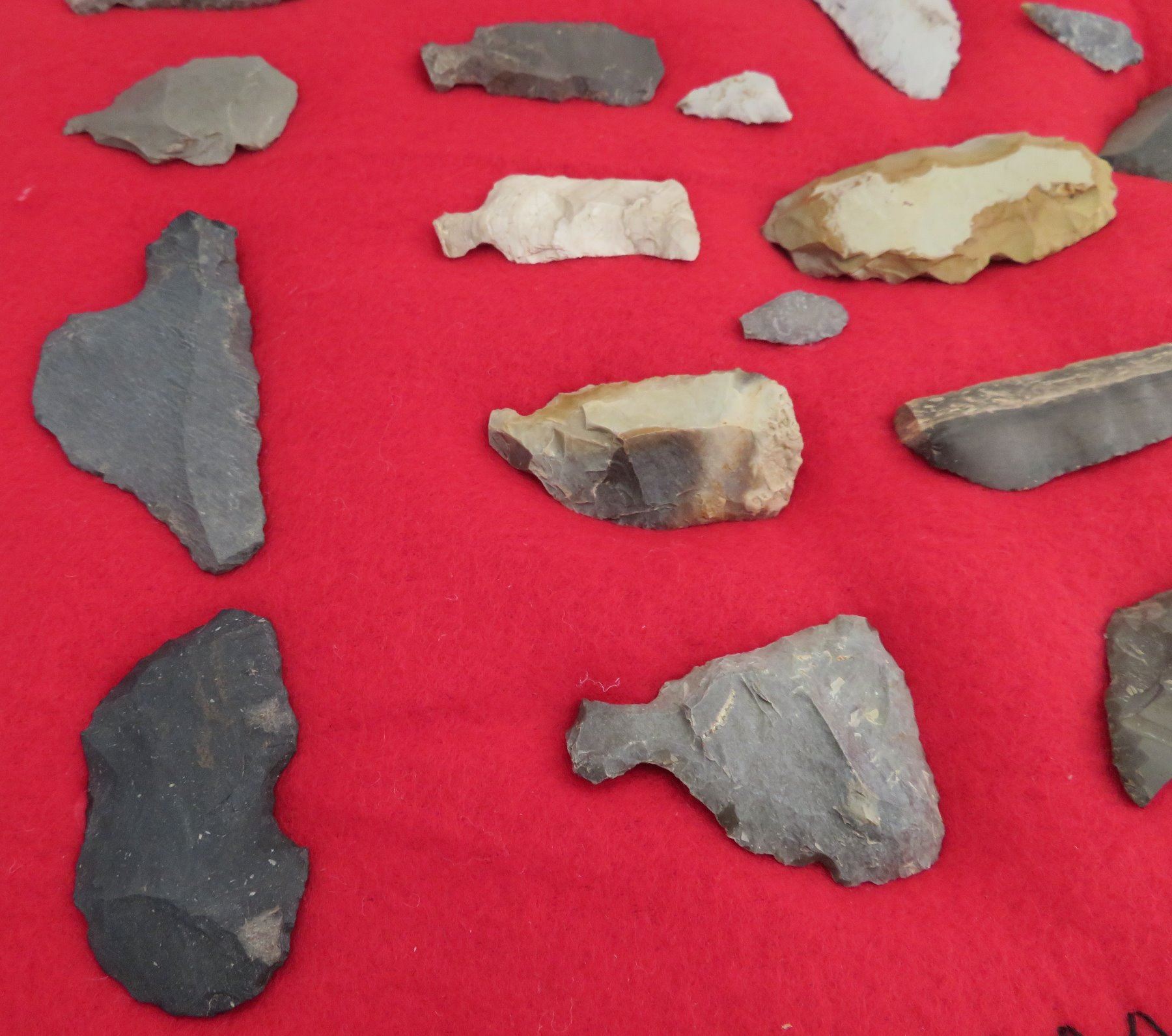 Japanese Arrowhead Flint Artifact Collection, pre-historic items. Made of chert, the largest measures 4 1/2". Japan. Fine, stone artifacts from Japan. Rare tang knives, frame not included. Condition: As found, see images. Shipping: $24.50 w/insurance and signature.