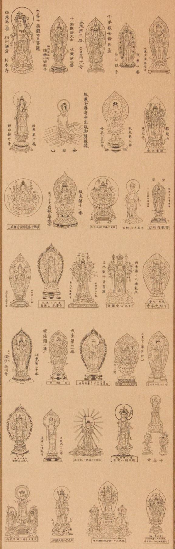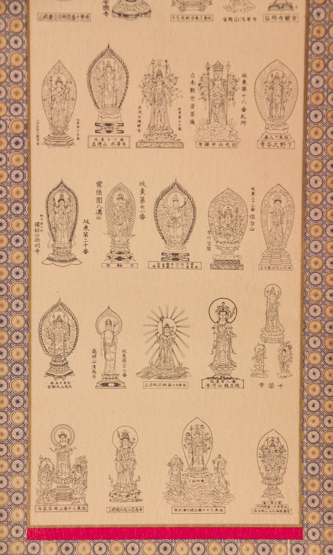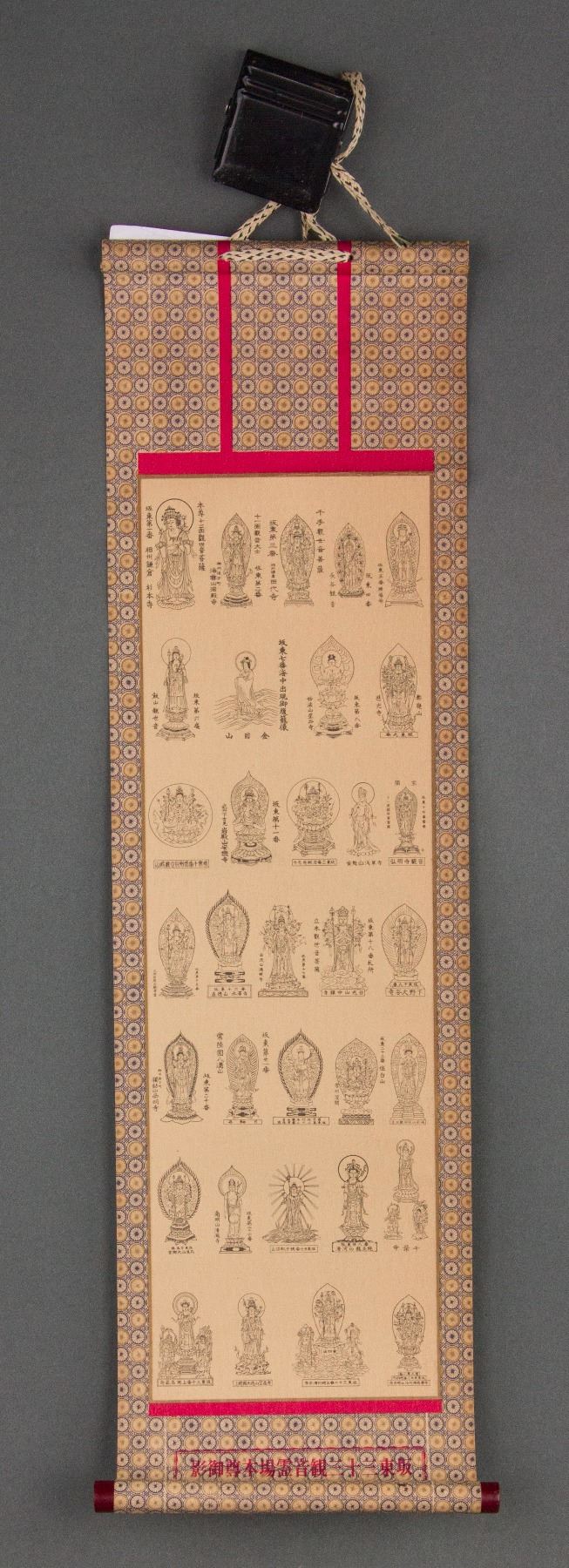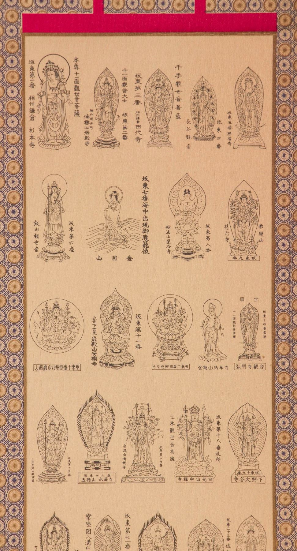 Bando Sanjusankasho Guanyin images; Japanese litho print on paper; hanging scroll; mark on bottom; 9.5 cm x 13 cm