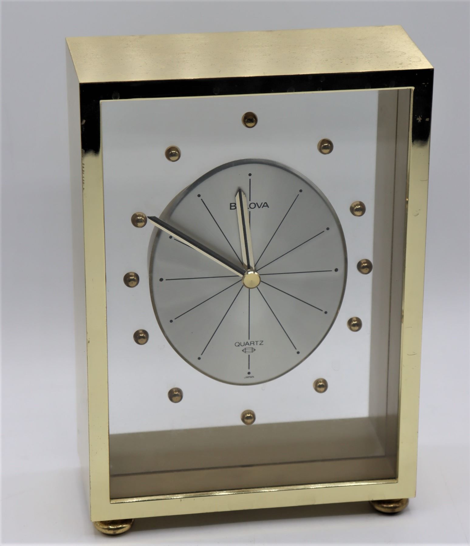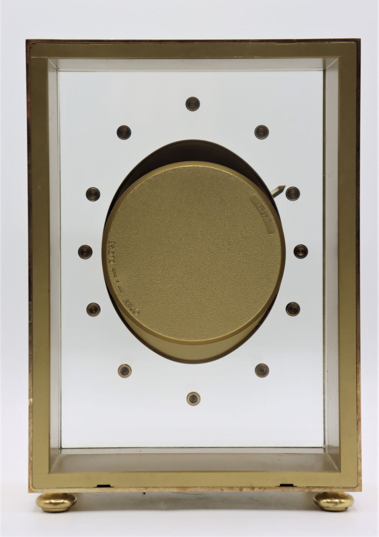 Clock is electric with a clear case.