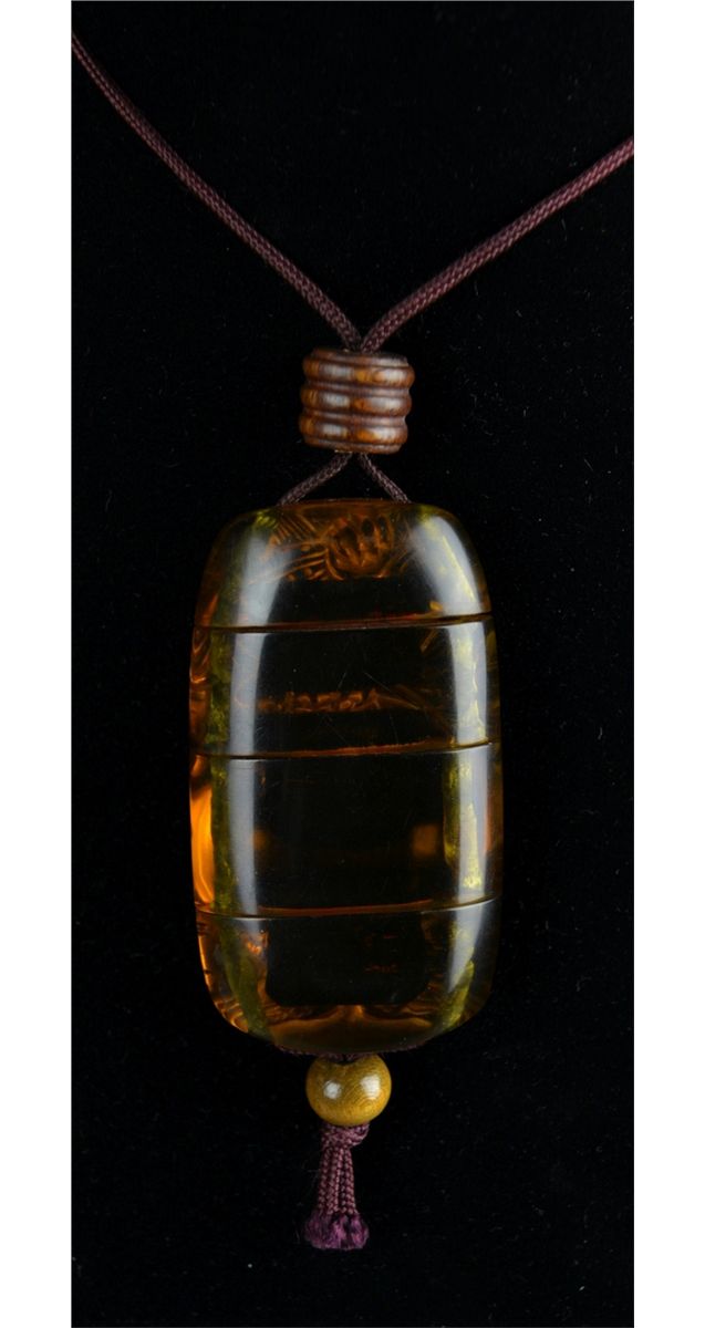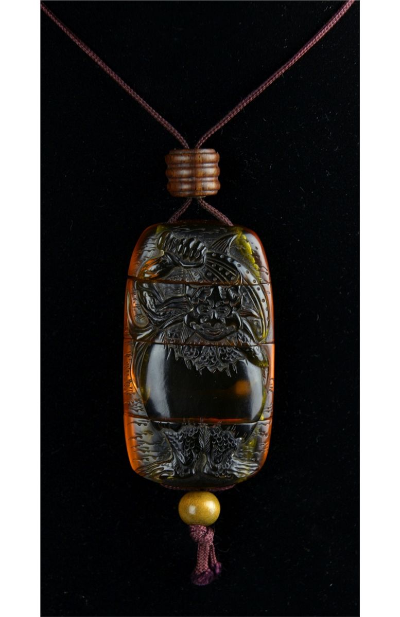 Japanese carved amber inro; four pieces; L: 6.5 cm, W: 4.5 cm, 41 grams; Provenance: Li Collection Toronto