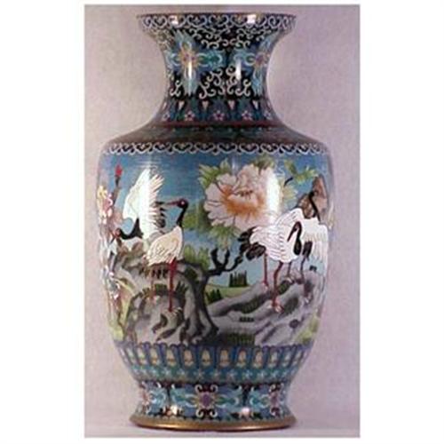Japanese Cloisonne 15 1/4" vase, eight cranes #1844272