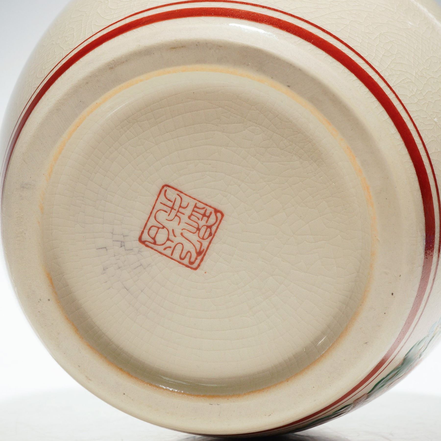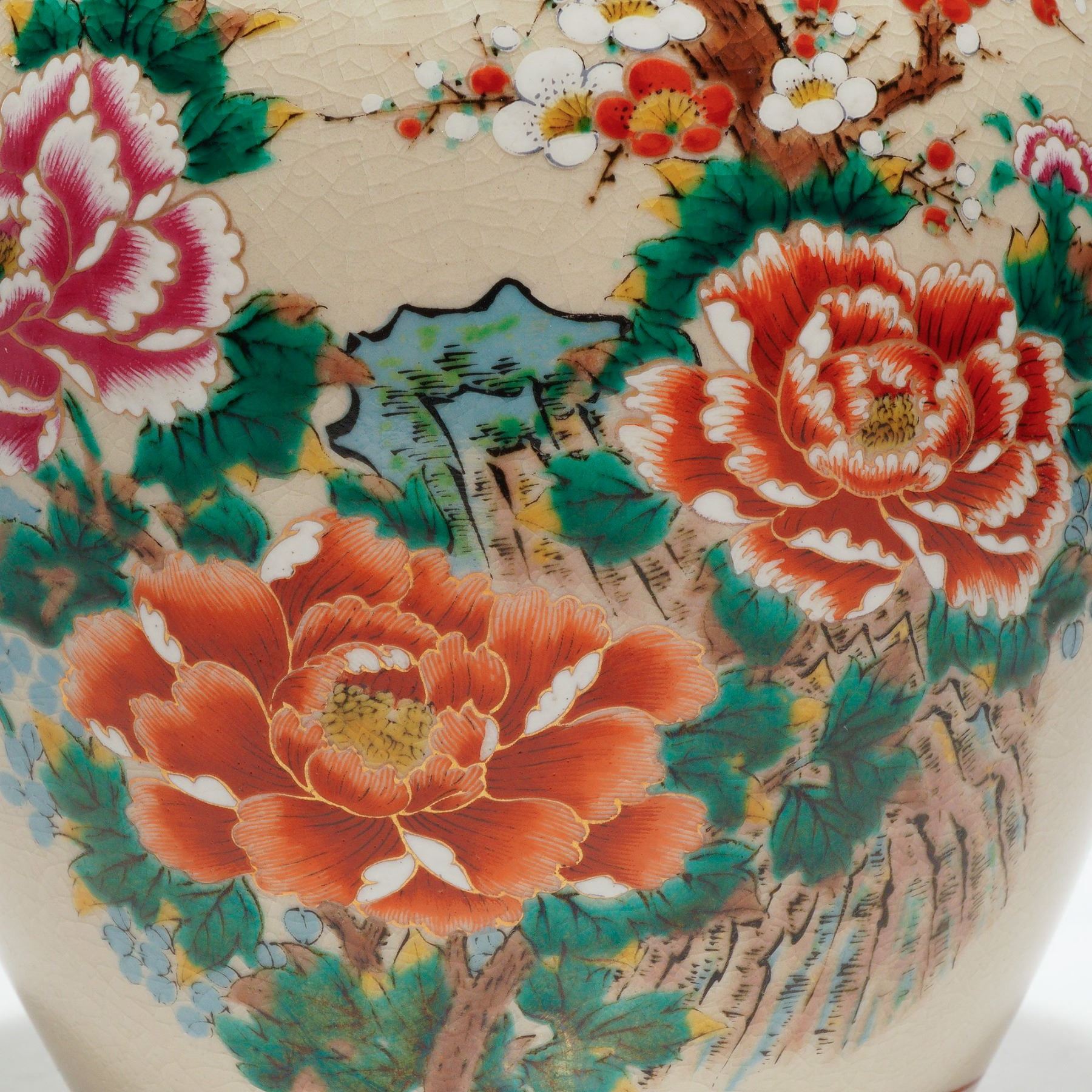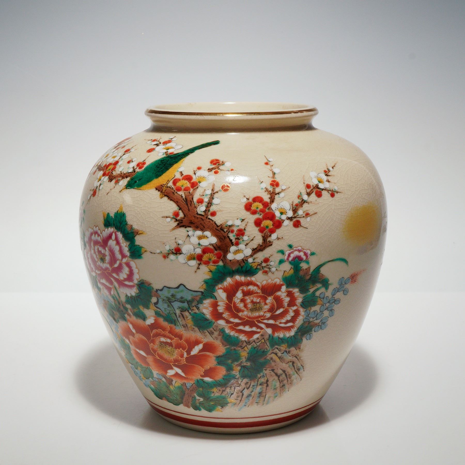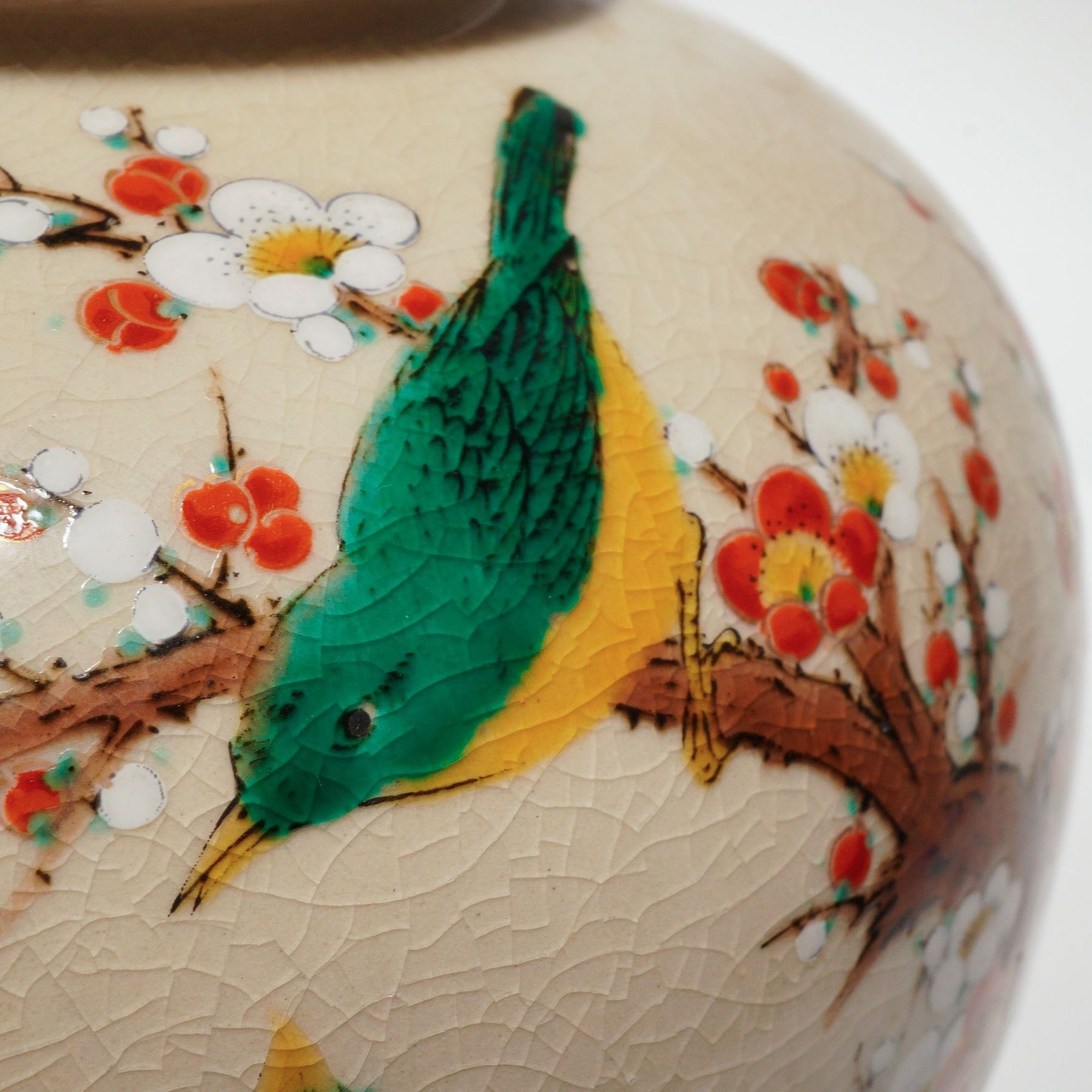 Japanese Crackle Glaze Bird and Flower Porcelain Vase