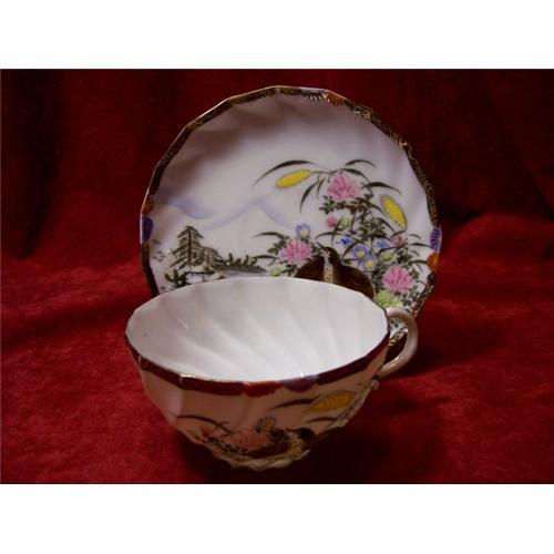 Super fine Japanese Satsuma style Scalloped Eggshell Porcelain Hand Painted Artist signed Cup & Saucer...now that is a mouthful! I think the pictures tell the story...very rare very fine set...truly a one of a kind...thanks for looking