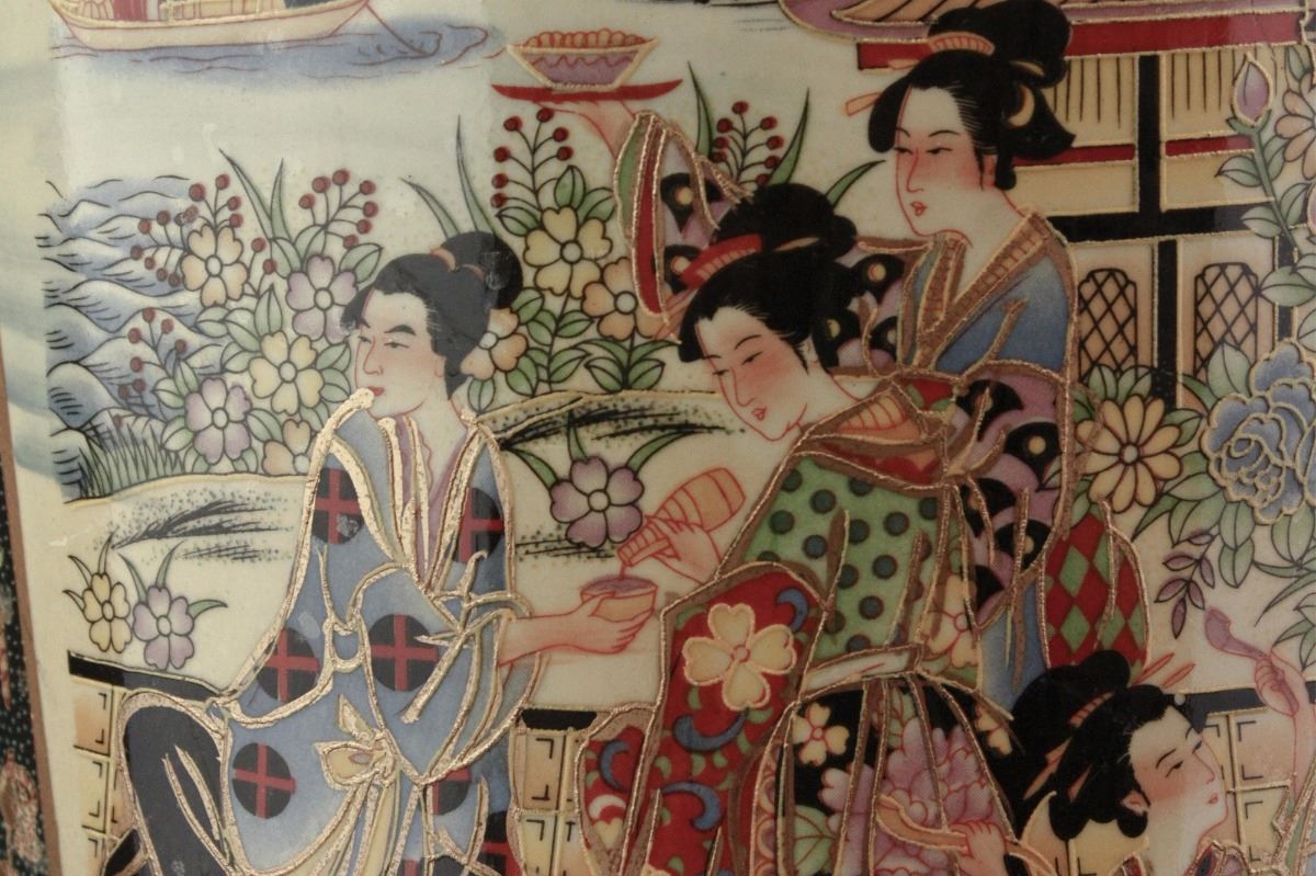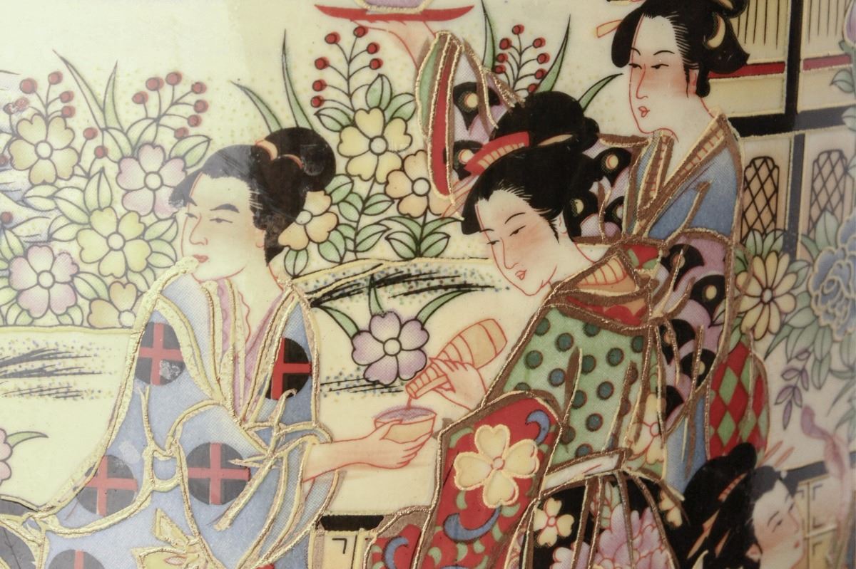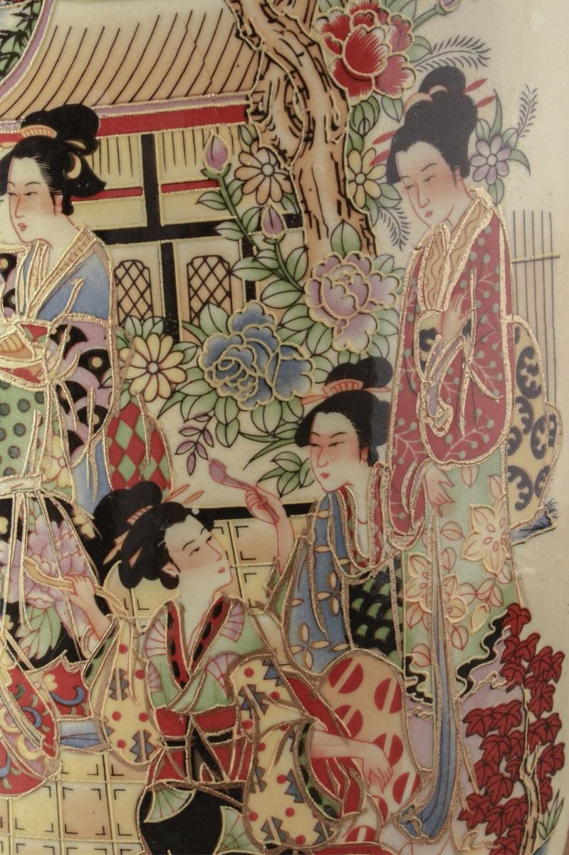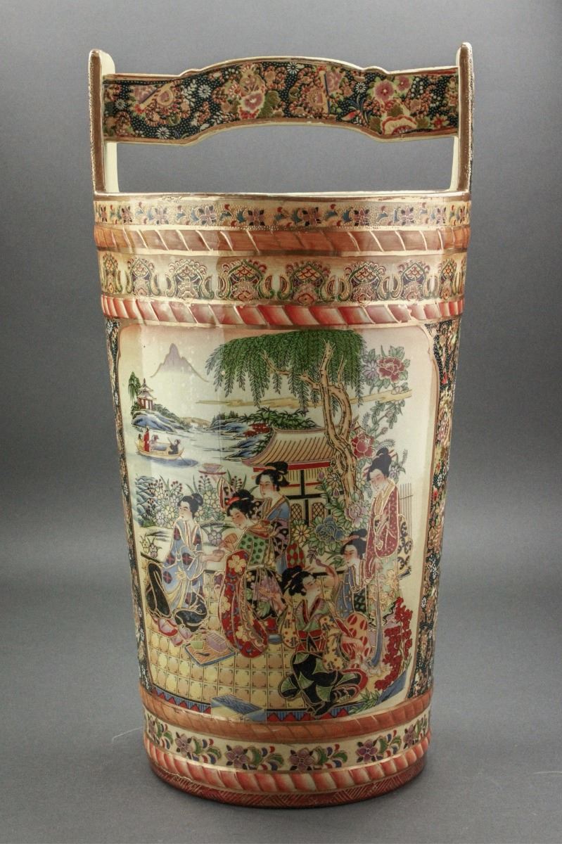 Japanese large porcelain bucket; featuring gilt drawings of women in kimono on body; W: 26.5 cm, H: 52 cm, 7000 grams