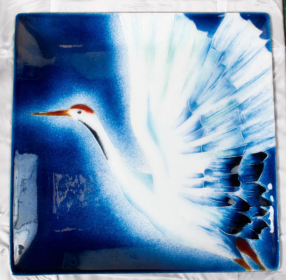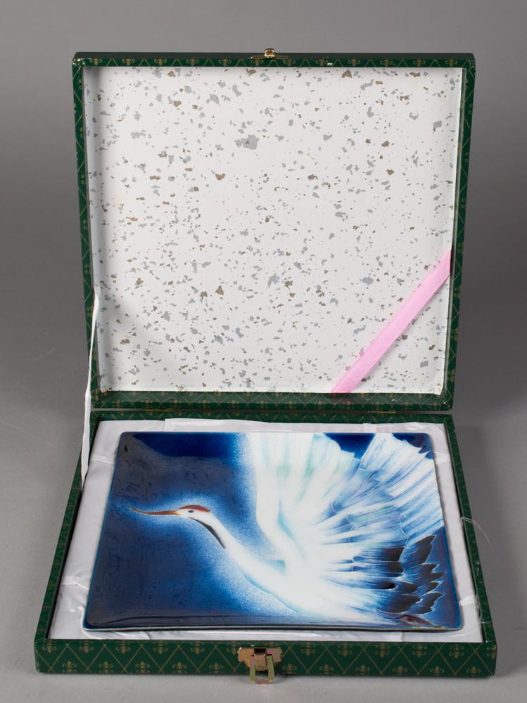 Depicting a brilliantly enameled colors of a red headed crane. It is known often red head cranes were symbols of the imperial house in China yet in Japan this may also apply at it is an honored symbol. Condition is excellent and in a nice presentation box with papers printed in Japanese. Circa late 20th century