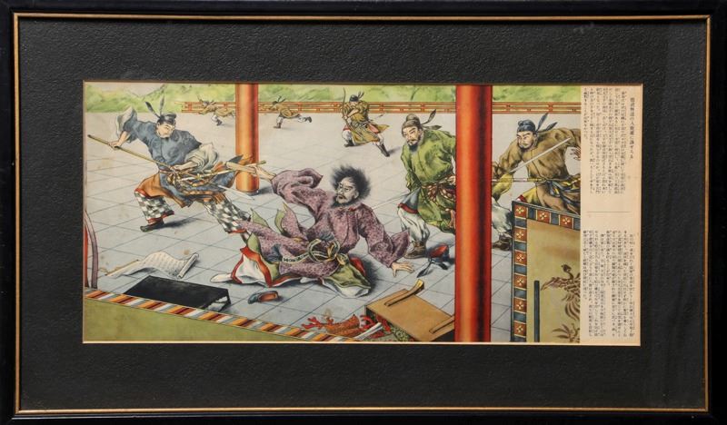 Japanese, Fight Scene with Men in Robes, Woodblock