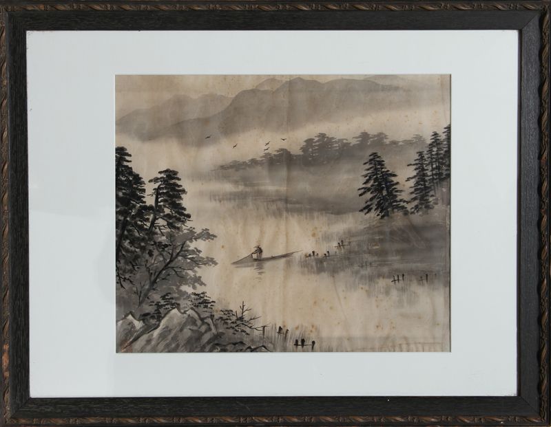 Japanese Fisherman, Watercolor on silk