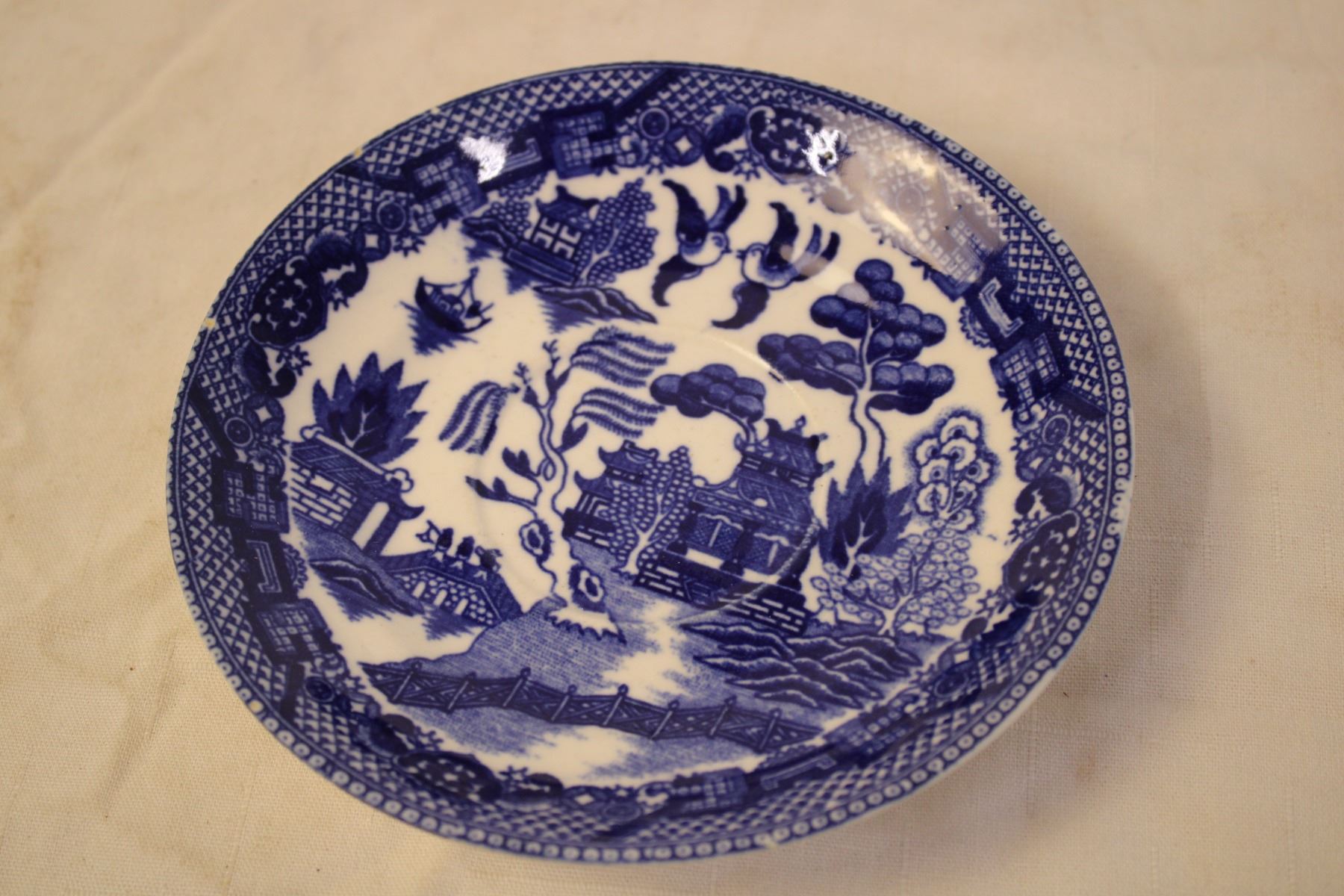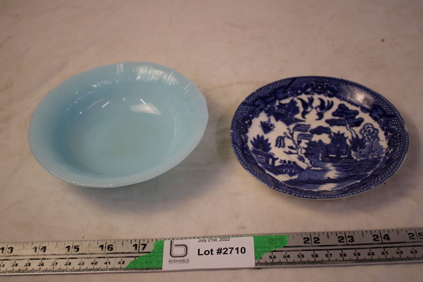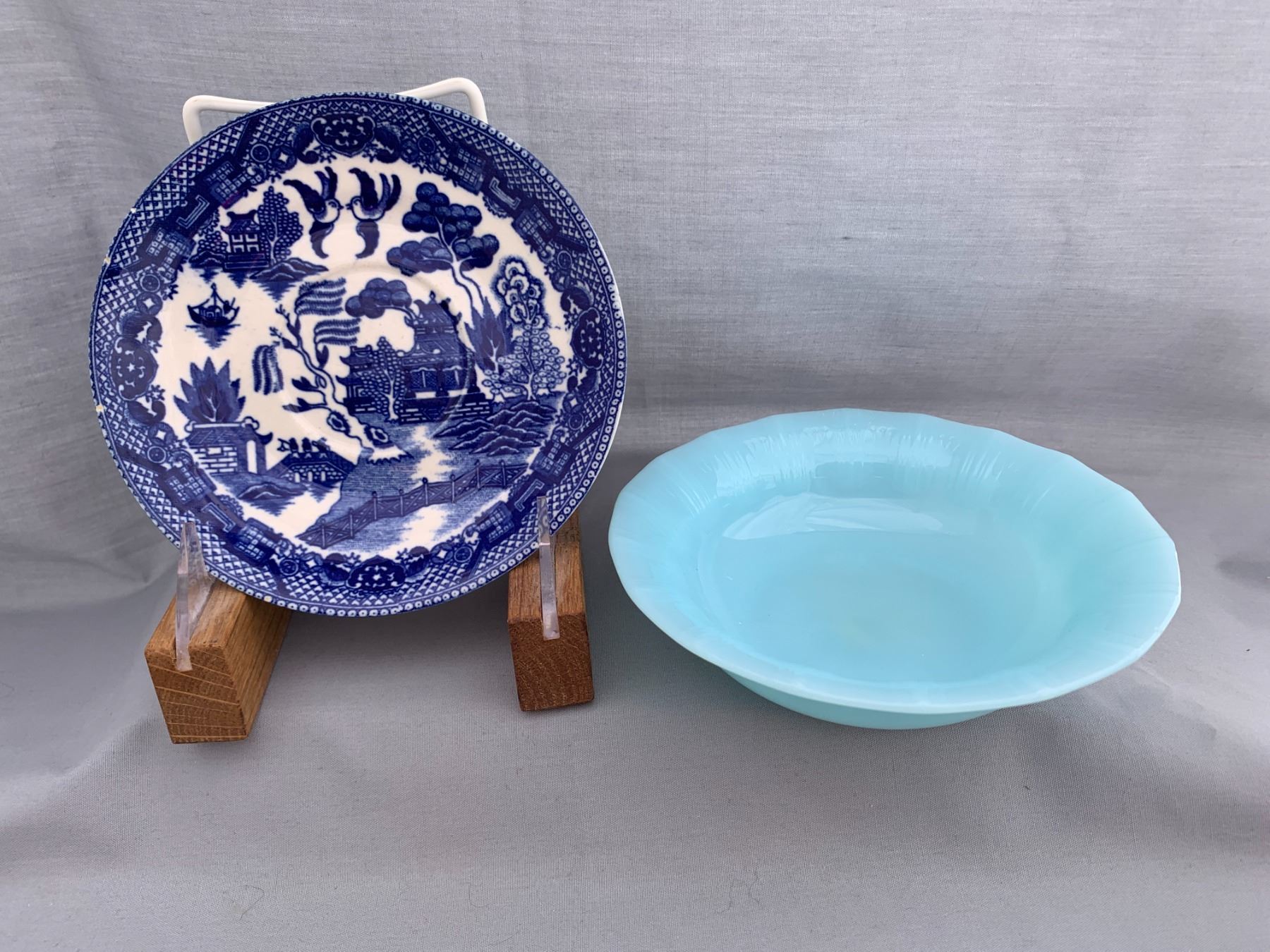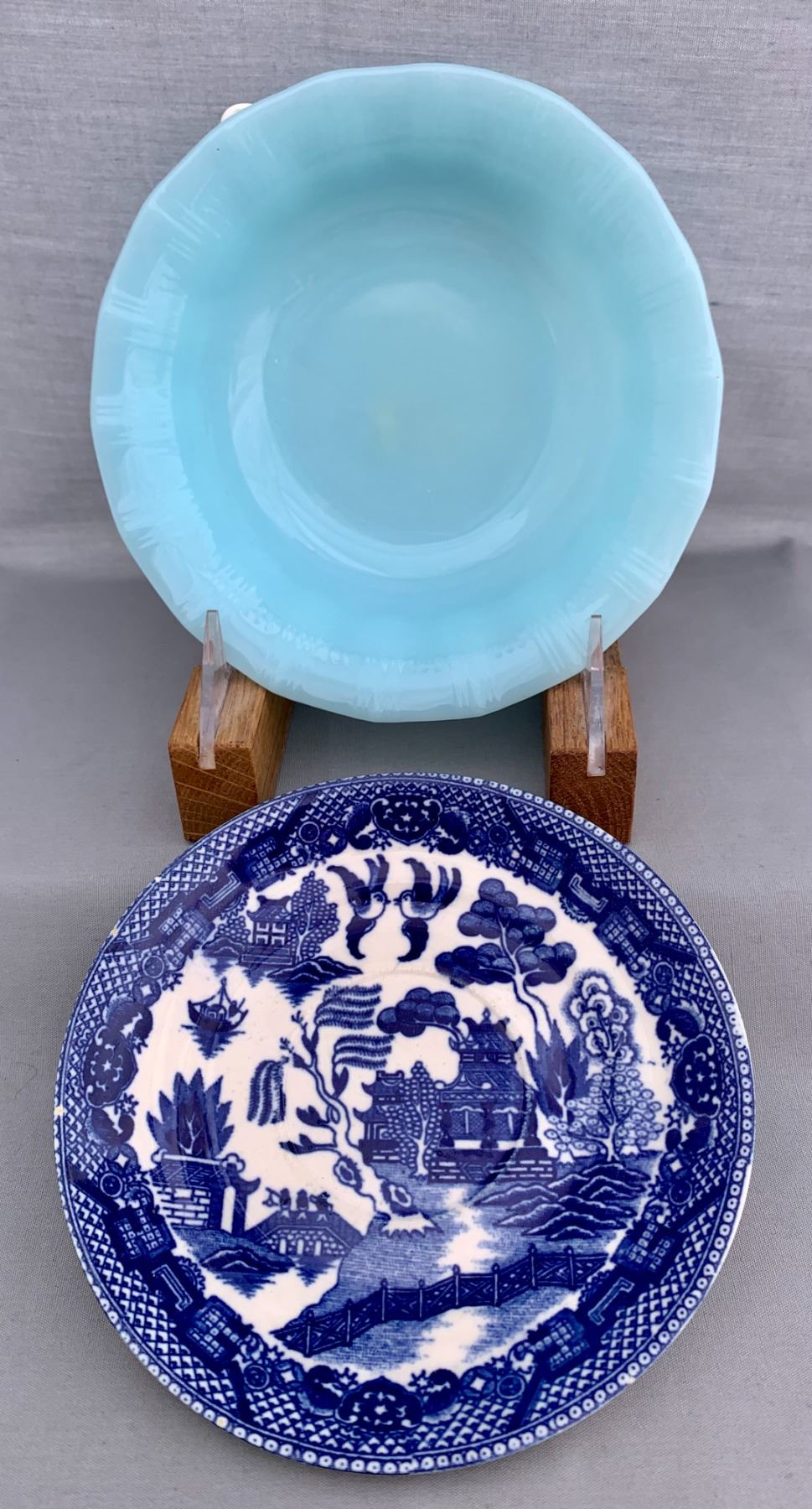 Japanese Flow Blue small plate & Pyrex Jade Blue 6”Bowl