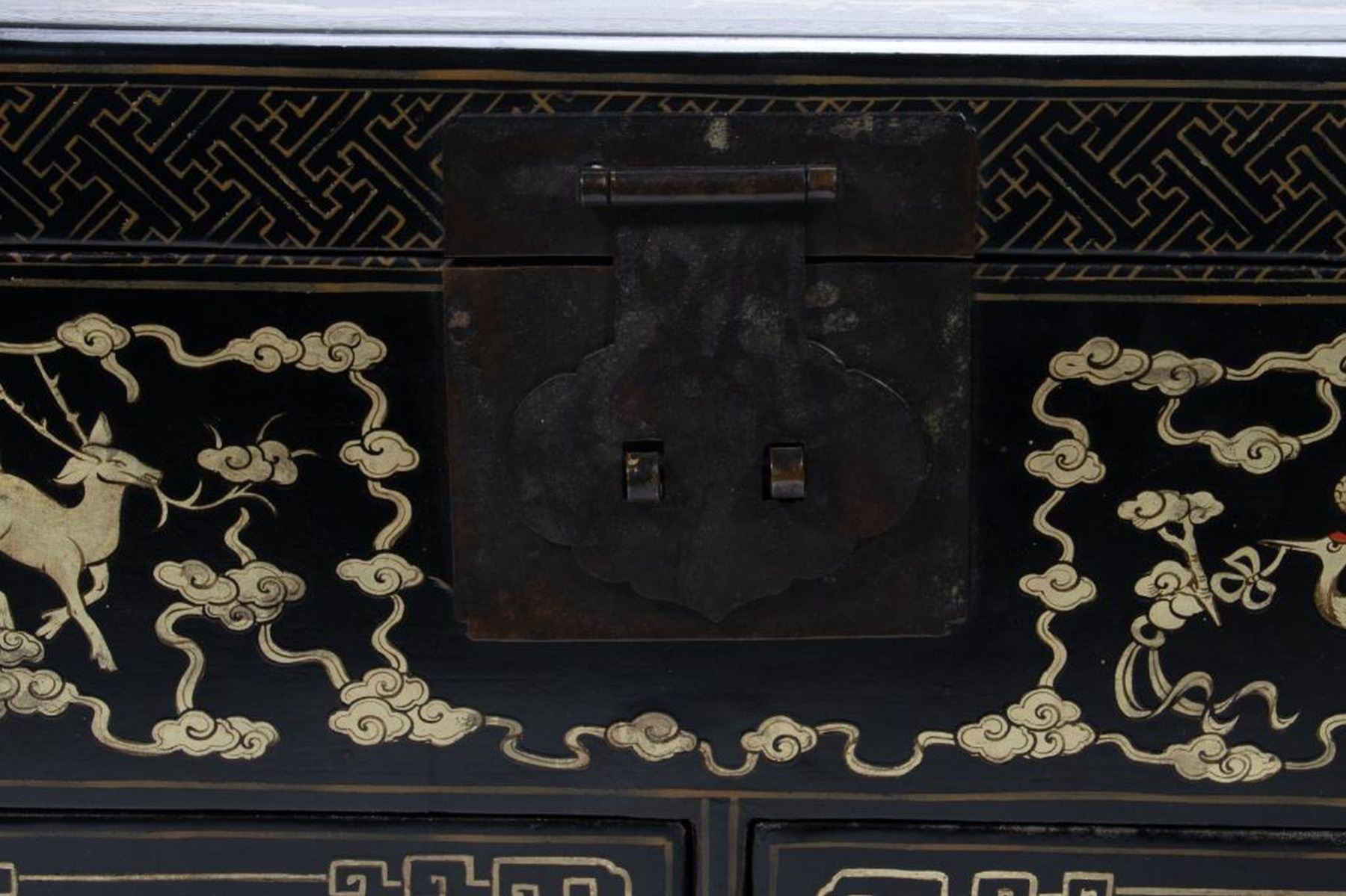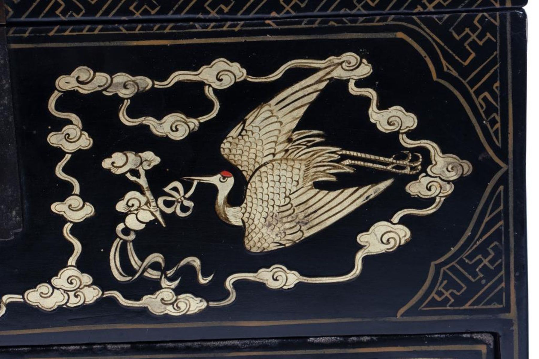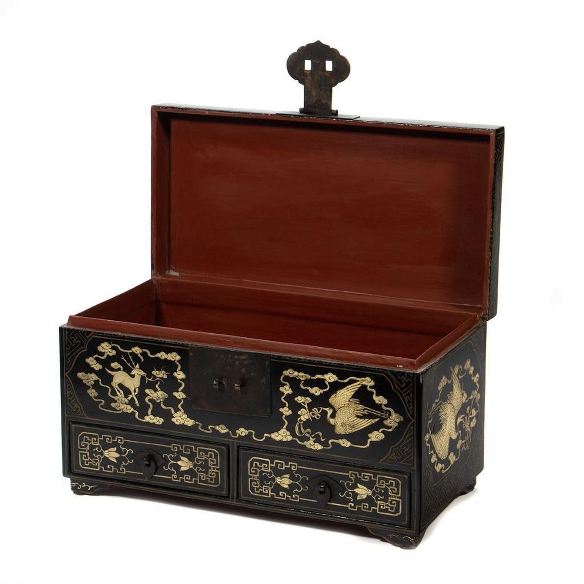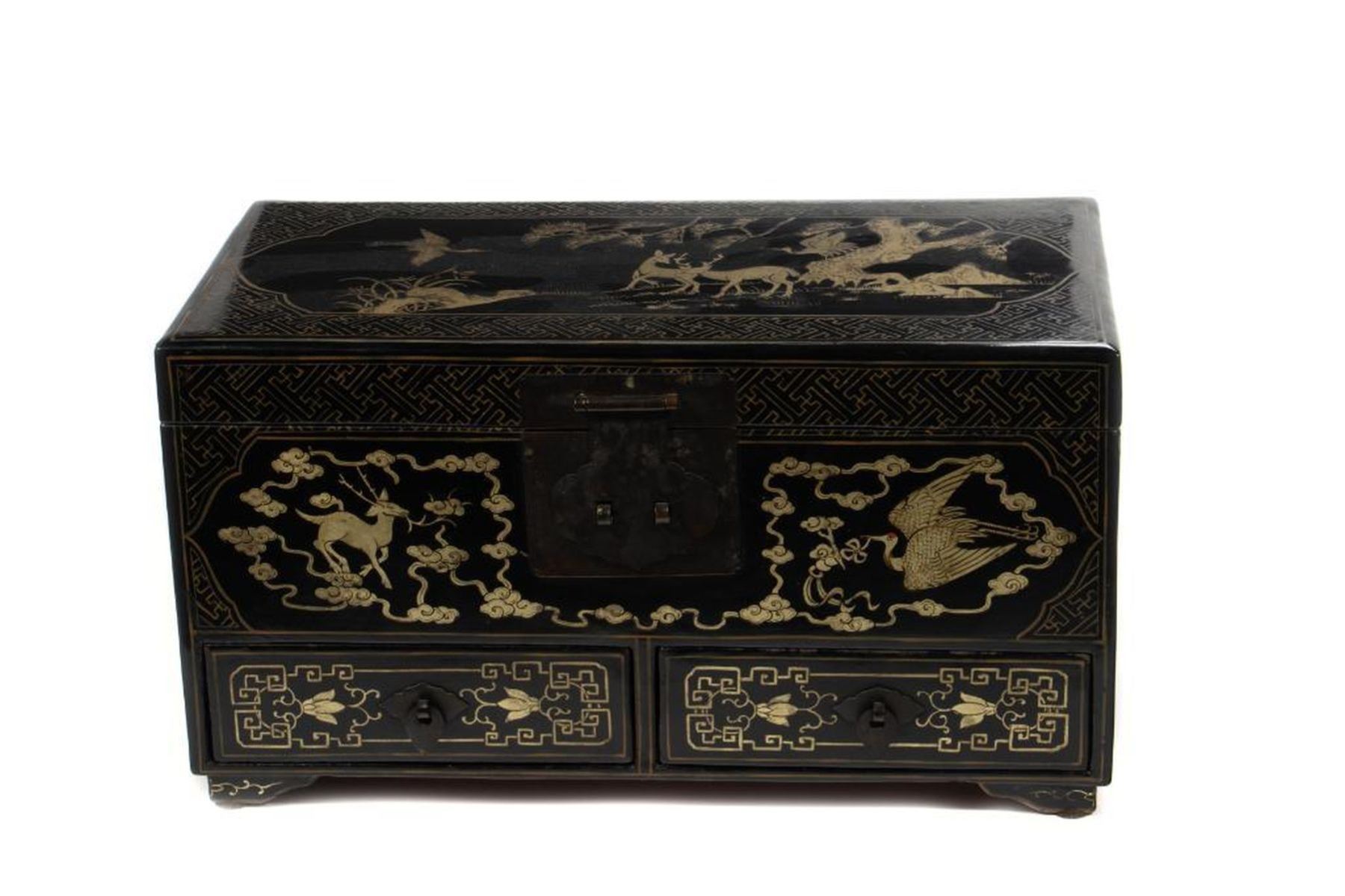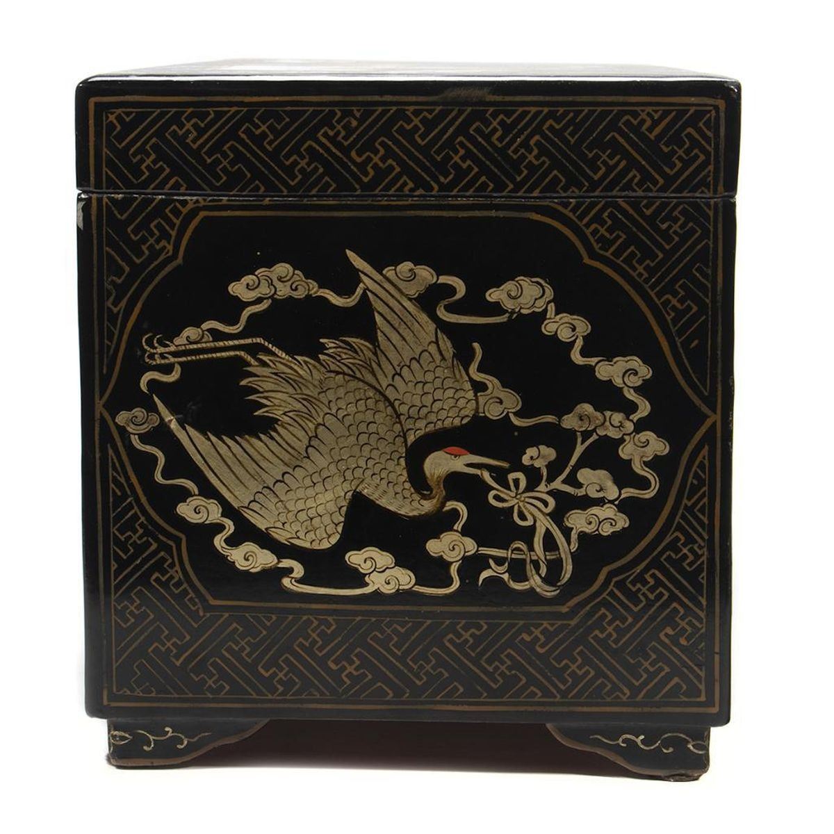Decorated with panels of Cranes and deer. 9in. (23cm) h. 8in. (20cm) w. 16in. (41cm) l. Condition: As new.