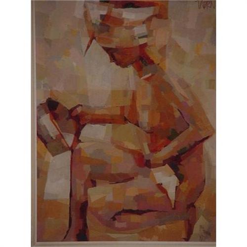 Anthony Thorn's "Japanese Girl Bathing" 16 x 20'', oil on mounted linen, frame 27 1/2'' X 23 3/4''. Signed Thorn upper left. Very well done.