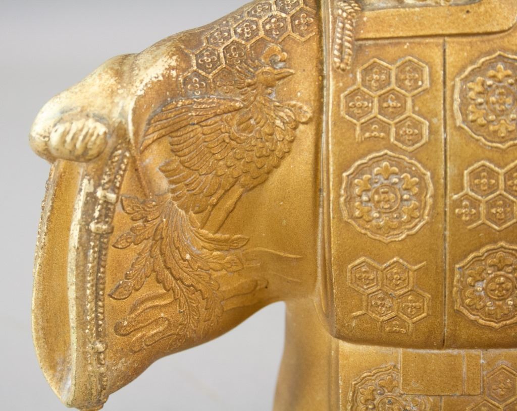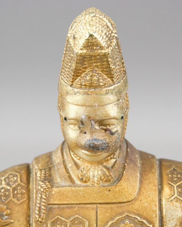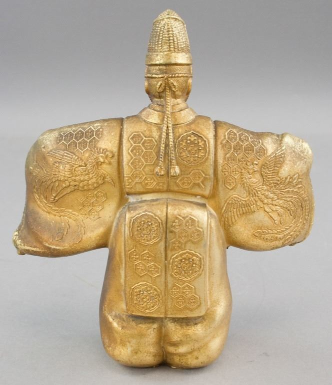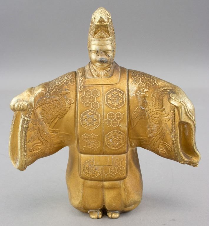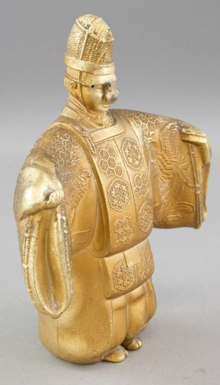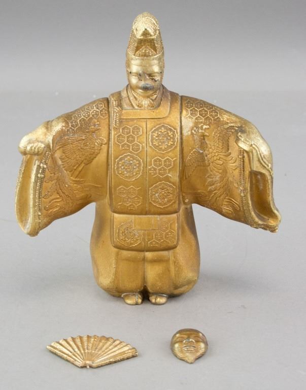 Japanese kabuki figure. Of gilt. With mask and fan. Early 20th century or later. 20 x 16 cm. 1,009 grams.