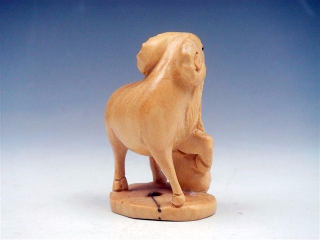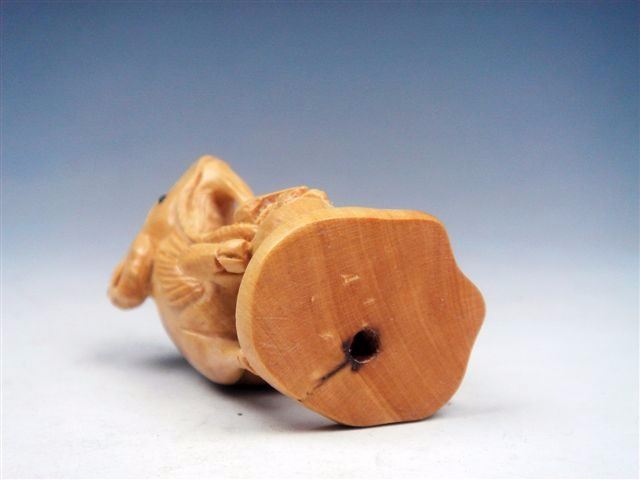 Item Description: up for sale is a solid fine boxwood hand crafted Japanese gorgeous netsuke, item size is approximately 2 inches. Very detailed hand carvings and great hand crafting, excellent workmanship.What's a netsuke: Netsuke is a miniature sculptures that were invented in 17th century Japan to serve a practical function (the two Japanese characters ne+tsuke mean "root" and "to attach"). Traditional Japanese garment—robes called kosode and kimono—had no pockets, however men who wore them needed a place to store their personal belongings such as pipes, tobacco, money, seals, or medicines.Their solution was to place such objects in containers (called sagemono) hung by cords from the robes' sash (obi). The containers may be a pouch or a small woven basket, but the most popular were beautifully crafted boxes (inro), which were held shut by an ojime, which were sliding beads on cords. Whatever the form of the container, the fastener that secured the cord at the top of the sash was a carved, button-like toggle called a netsuke.Netsuke, like the inro and ojime, evolved over time from being strictly utilitarian into objects of great artistic merit and an expression of extraordinary craftsmanship. Such objects have a long history reflecting the important aspects of Japanese folklore and life. Netsuke production was most popular during the Edo period in Japan, around 1615-1868. Today, the art lives on and some modern works can command high prices in the UK, Europe, the USA, Japan and elsewhere.