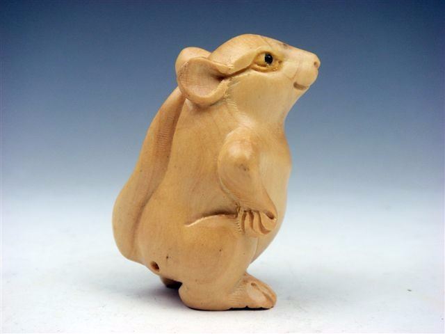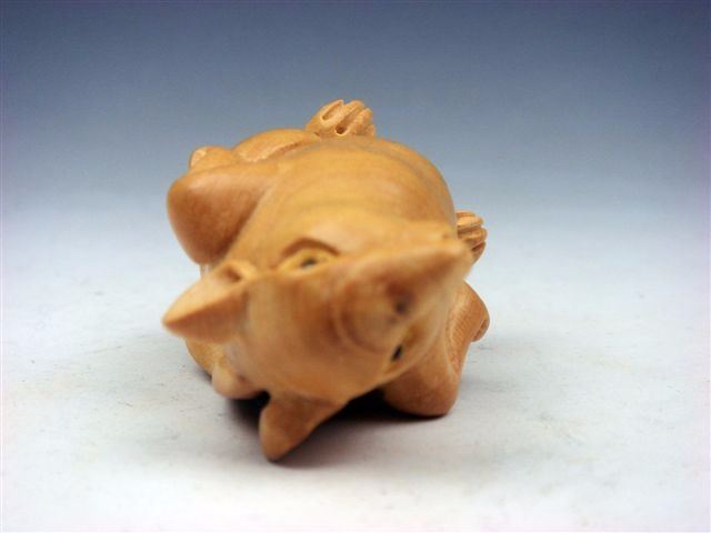 Item Description: Up for sale is a solid fine boxwood hand crafted Japanese gorgeous netsuke, item size is approximately 2 inches. Very detailed hand carvings and great hand crafting, excellent workmanship. Great piece for your collection!*1 Inch = 2.54 Centimeter (CM)*What's a netsuke: Netsuke is a miniature sculptures that were invented in 17th century Japan to serve a practical function (the two Japanese characters ne+tsuke mean "root" and "to attach"). Traditional Japanese garment—robes called kosode and kimono—had no pockets, however men who wore them needed a place to store their personal belongings such as pipes, tobacco, money, seals, or medicines.Their solution was to place such objects in containers (called sagemono) hung by cords from the robes' sash (obi). The containers may be a pouch or a small woven basket, but the most popular were beautifully crafted boxes (inro), which were held shut by an ojime, which were sliding beads on cords. Whatever the form of the container, the fastener that secured the cord at the top of the sash was a carved, button-like toggle called a netsuke.Netsuke, like the inro and ojime, evolved over time from being strictly utilitarian into objects of great artistic merit and an expression of extraordinary craftsmanship. Such objects have a long history reflecting the important aspects of Japanese folklore and life. Netsuke production was most popular during the Edo period in Japan, around 1615-1868. Today, the art lives on and some modern works can command high prices in the UK, Europe, the USA, Japan and elsewhere.