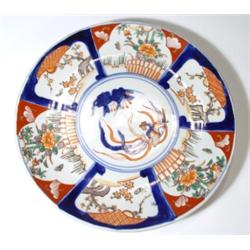 Japanese Imari charger, hand painted with panels of flowers, 34cm diameter