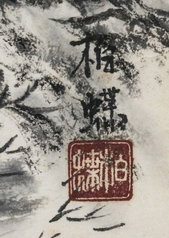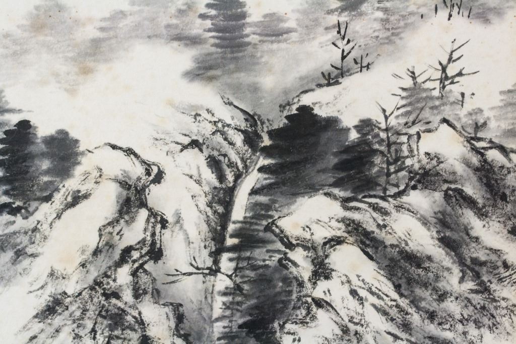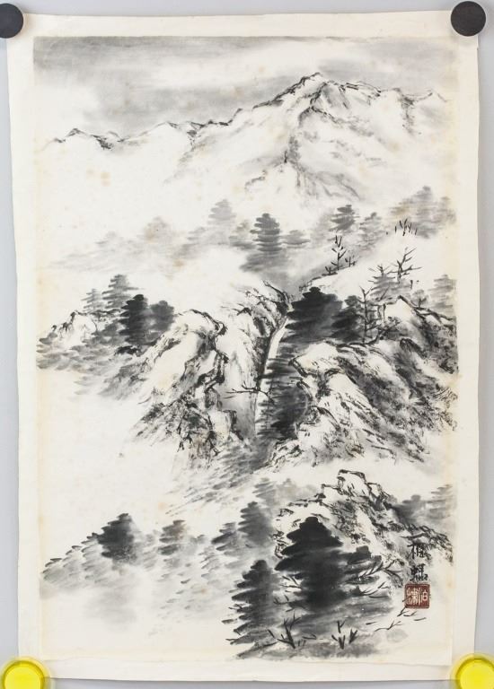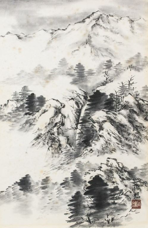 Japanese ink on paper. Featuring mountain landscape. Signed to the bottom right. Inscribed with one artist seal. 48 x 33 cm. Provenance: Private collection, Philippines