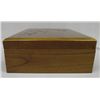 Japanese Kusachu Akita Tradition Inlay Mother of Pearl Box. measures approx. 13''L x 9 1/2''W x 4''D. Box has inlay marquetry wooden inlay leaves & flowers with Mother of Pearl flower centers. Marked Kusachu on the bottom of the box.