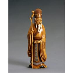 Japanese Large Tea-Stained and Parcel Gilt Ivory Okimono of Emma