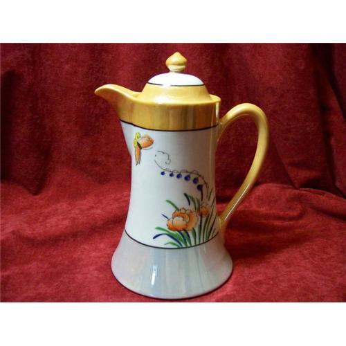 Very elegent chocolate pot...full on Japanese 1920's lustre...fine nouveau pattern...Very fine gold and silver lustre...Thanks for looking