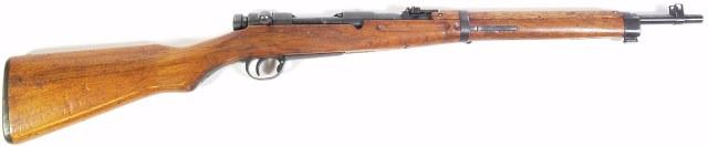 6.5 bolt action, wood stocks with normal military handling marks, metal blue with approx. 80% original finish, with visible mum on top of receiver, good action and nice bore. Modern. Est. 850-1500