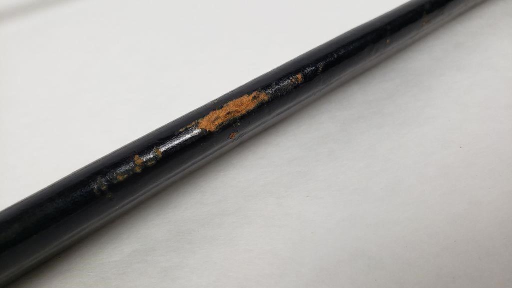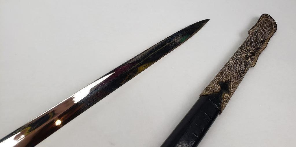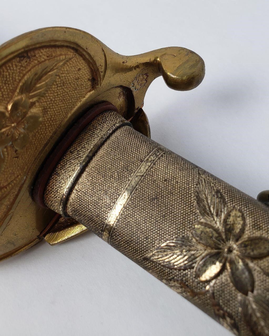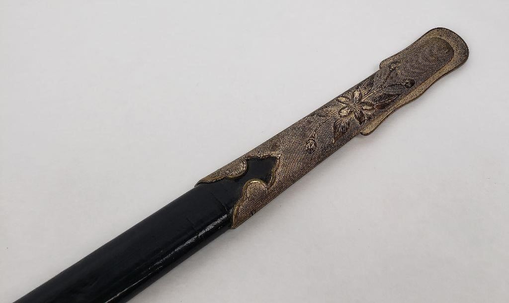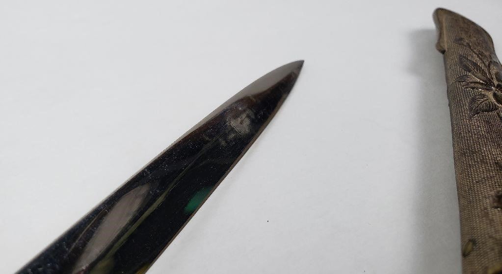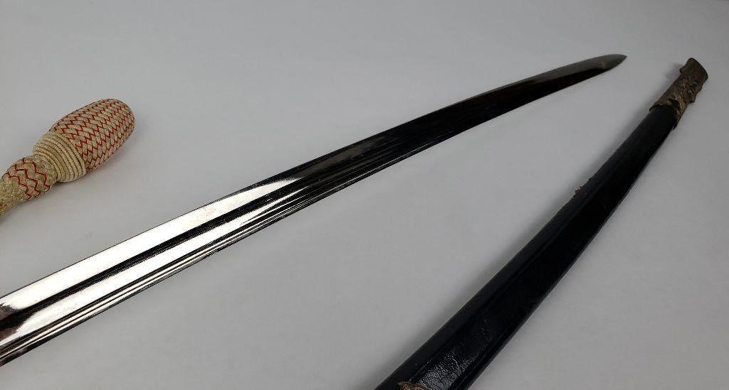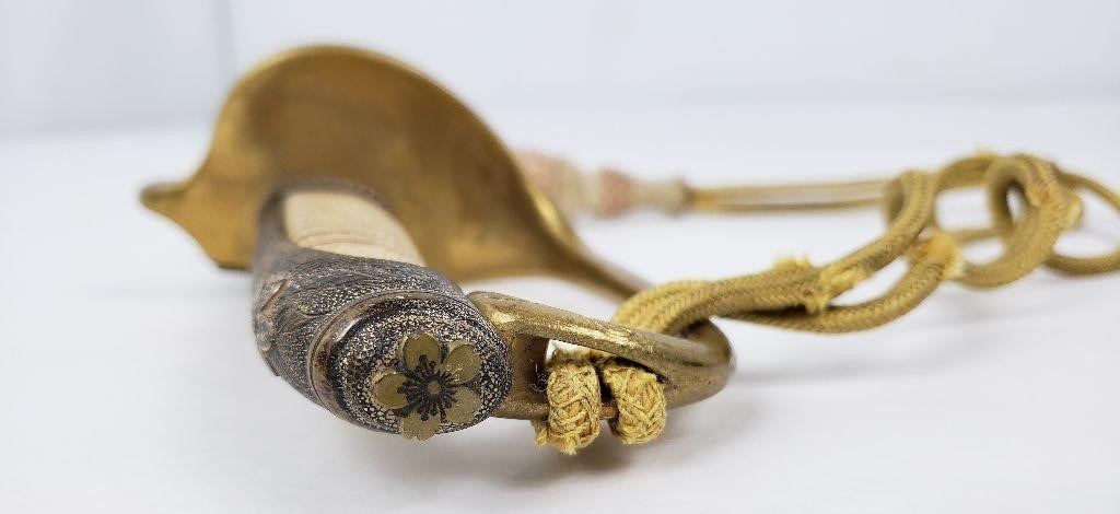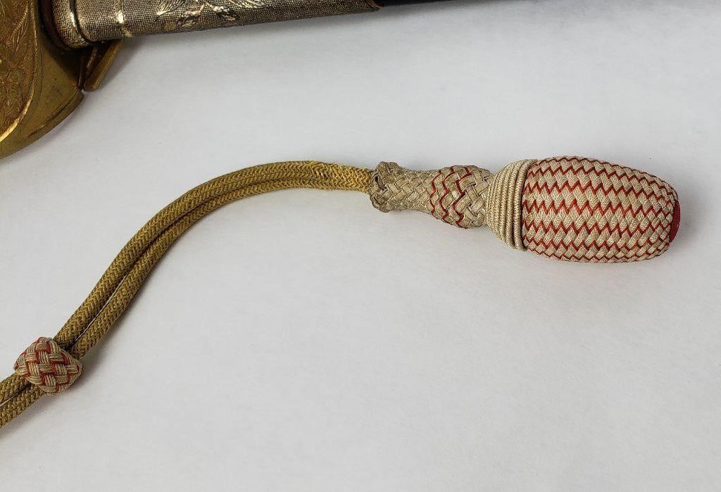 Very nice example. Original knot. Leather sheath is still supple. Some wear to the knot cord as shown.