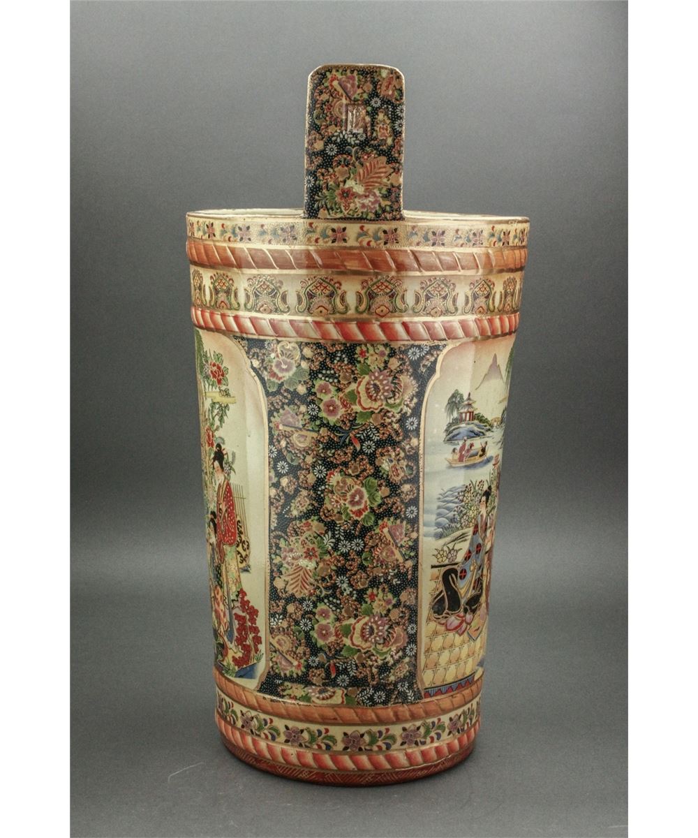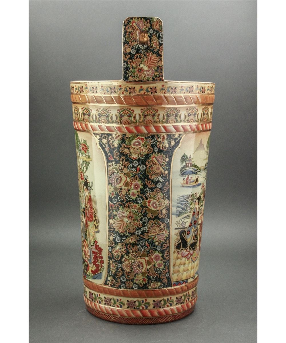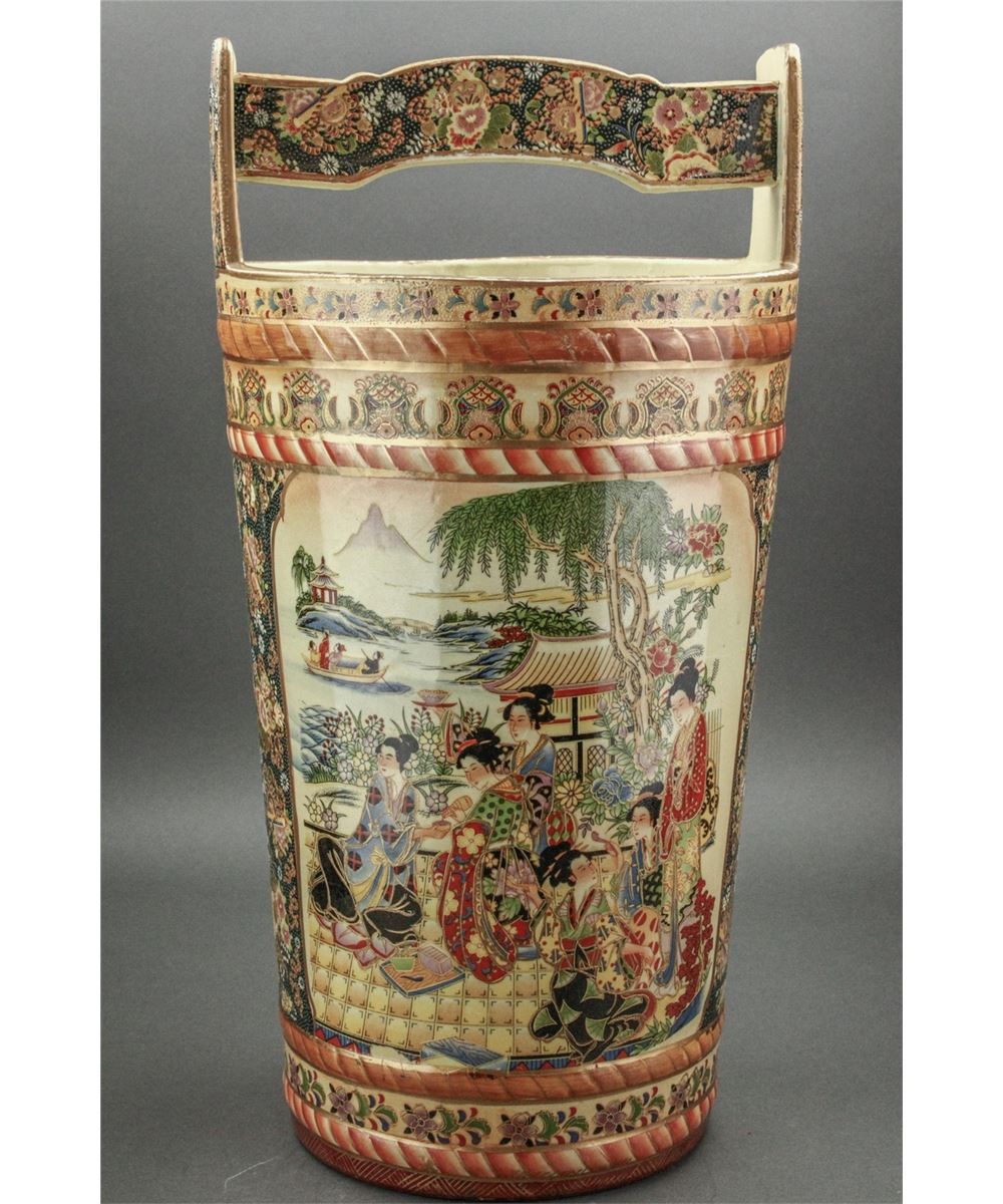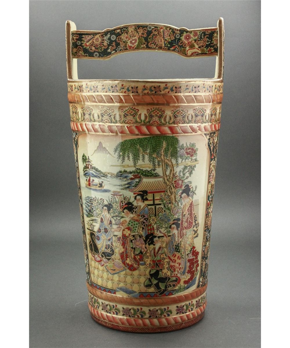 Japanese large porcelain bucket; featuring gilt drawings of women in kimono on body; W: 26.5 cm, H: 52 cm, 7000 grams